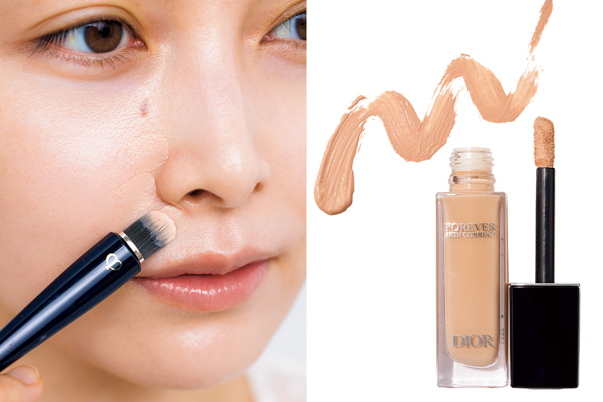 肌に溶け込むようなクリーミーなテクスチャー。ディオールスキン フォーエヴァー スキン コレクト コンシーラー 1N ¥5,720(パルファン・クリスチャン・ディオール)※写真下のブラシはパンソー コレクチュール n¥3,850(クレ・ド・ポー ボーテ)
