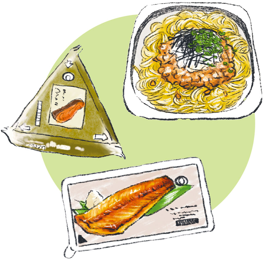 実はコンビニは脂質オフフードが豊富。ご飯がOKなのでおにぎり類を選べます。ただしマヨネーズが油たっぷりなので、マヨネーズを使用するツナマヨはNG。同じ理由でサンドイッチ類も大半が避けたほうがよさそう。脂質の少ない和風パスタや焼き魚などを上手に利用しましょう。ヨーグルトは脂質オフタイプを、アイス類はシャーベットタイプがお勧めです。