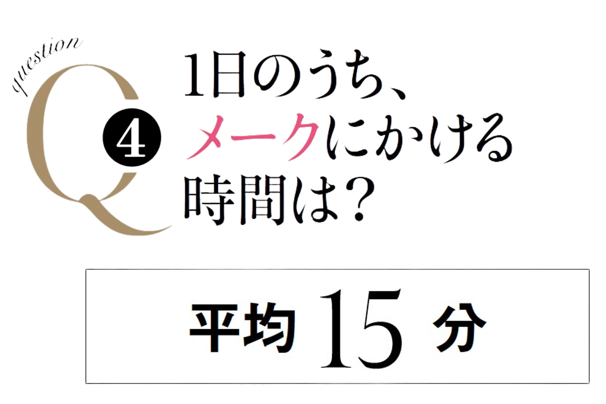 メイクは15分でさっと仕上げるという人が大半。美容好きなだけあって、自分を一番キレイに見せるコスメの使い方を熟知しているので、あまり時間をかけません。