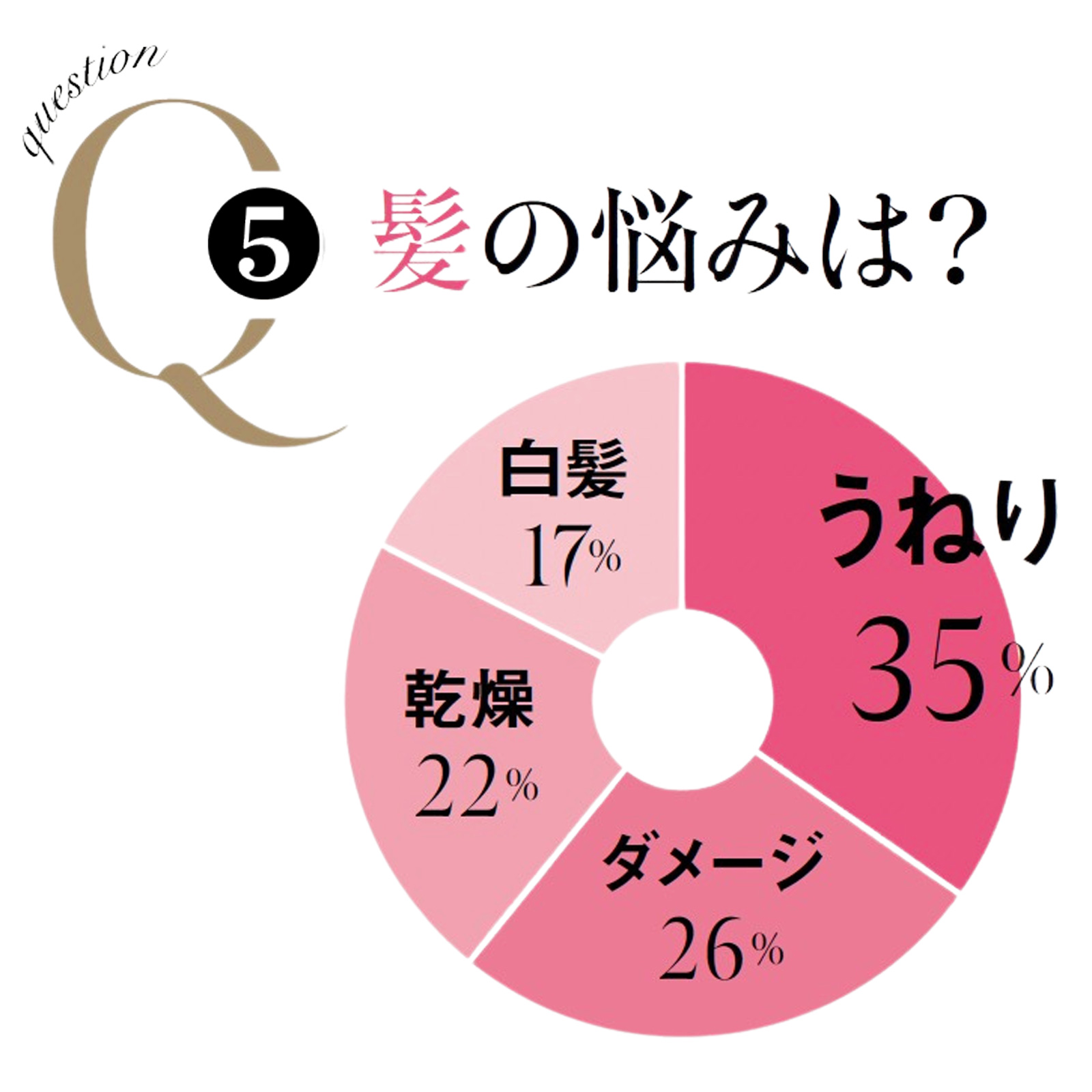 出産を経て、髪質が変わり戸惑っているという意見をはじめ、白髪など、年を重ねて悩みが増えてきたという声ばかり。“ツヤのある髪が美の基本”という考えが表れています。