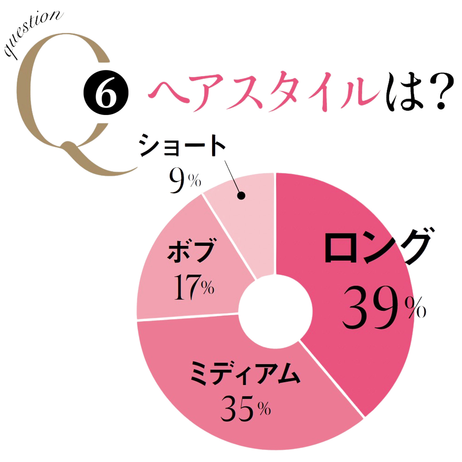 ロングとミディアムの長めスタイルが多数を占め、みんなさらさらヘアが自慢。昔からあえてロングヘアを貫き、「艶めく髪に美が宿ると思います!」と断言する人も。