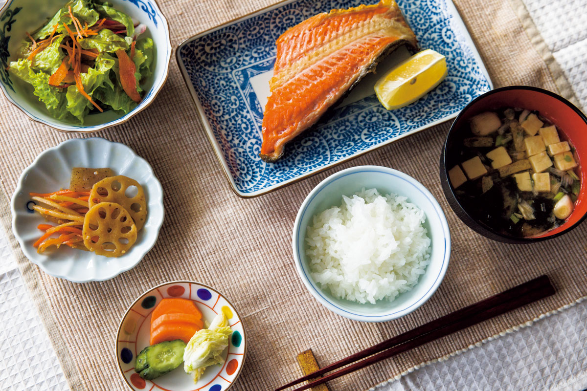 タンパク質は筋肉を維持するための大切な栄養素。確実に吸収させるため最初に食べます。次は糖の吸収を緩やかにする野菜や海藻を、最後にご飯などの炭水化物を摂り、糖質過多の食事を防いで血糖値の上昇を抑制します。
