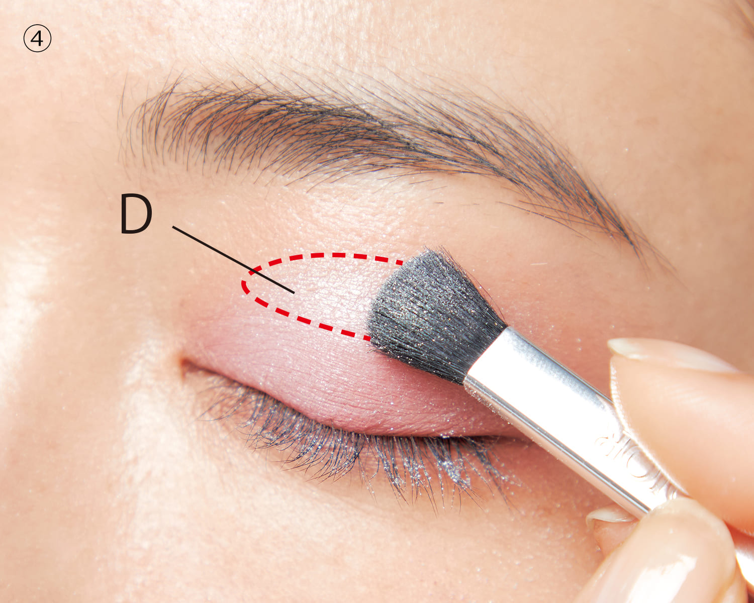 アイホールの上部境目に、ブラシに取ったDをスッとライン状に入れてハリと立体感を。
