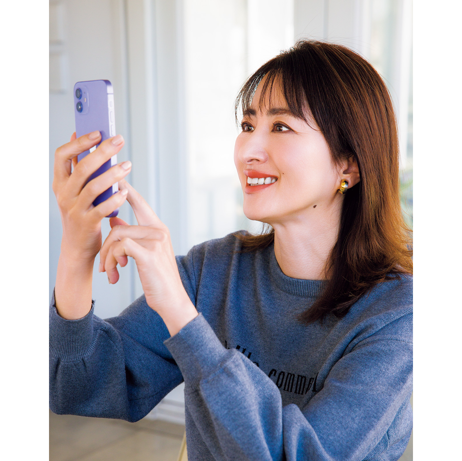 スマホを見る時は、目の位置にスマホを上げましょう。視線を下げずに、平行にスマホを見ることで、首が前に傾くのを防ぎます。二の腕の運動にもなって、一石二鳥です。