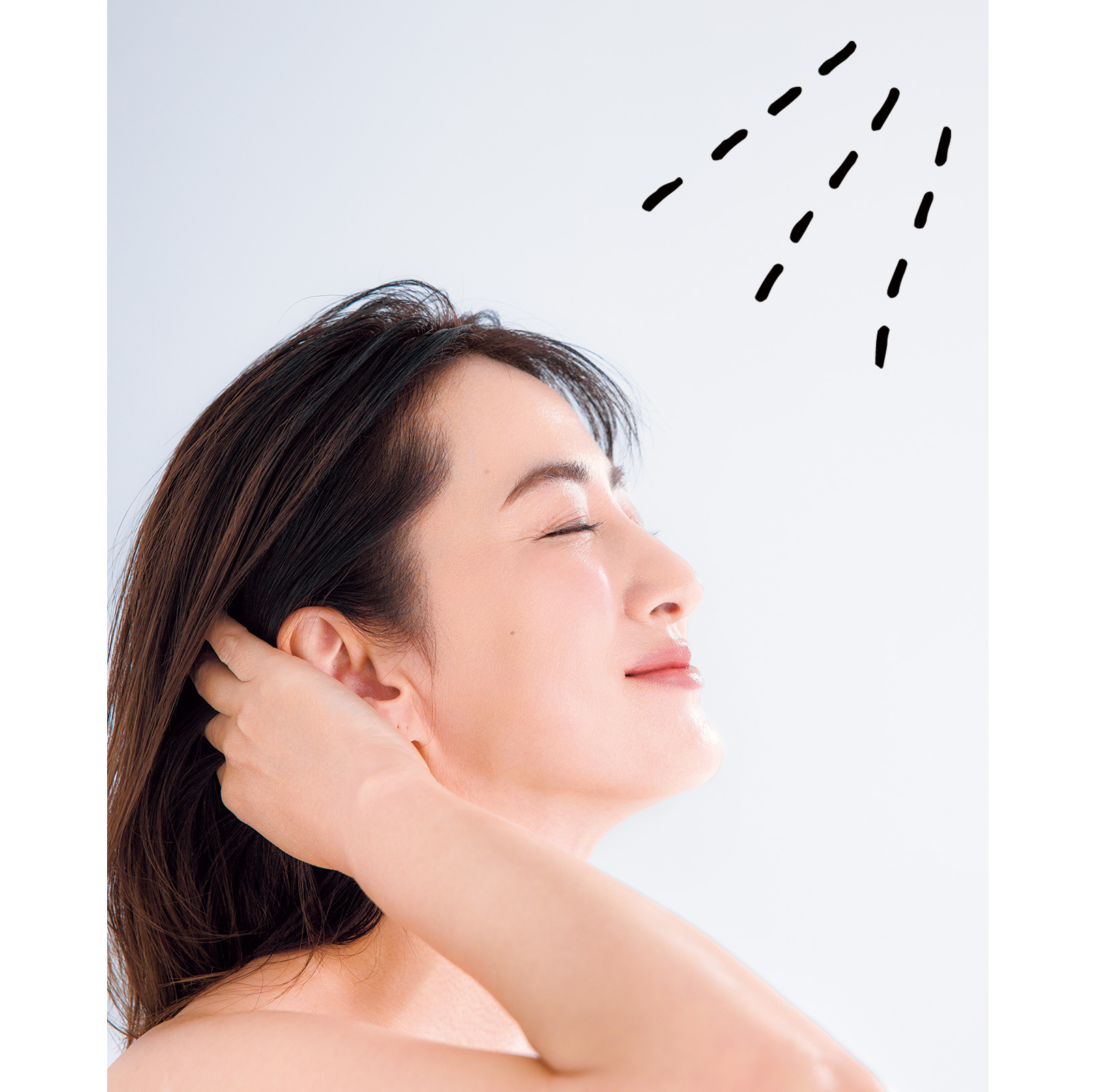 シャワーでシャンプーを流す時は下を向くのではなく、上を向いて流しましょう。日常のあらゆるシーンで上を向くチャンスを増やすことが、ストレートネックを防ぐ近道です。