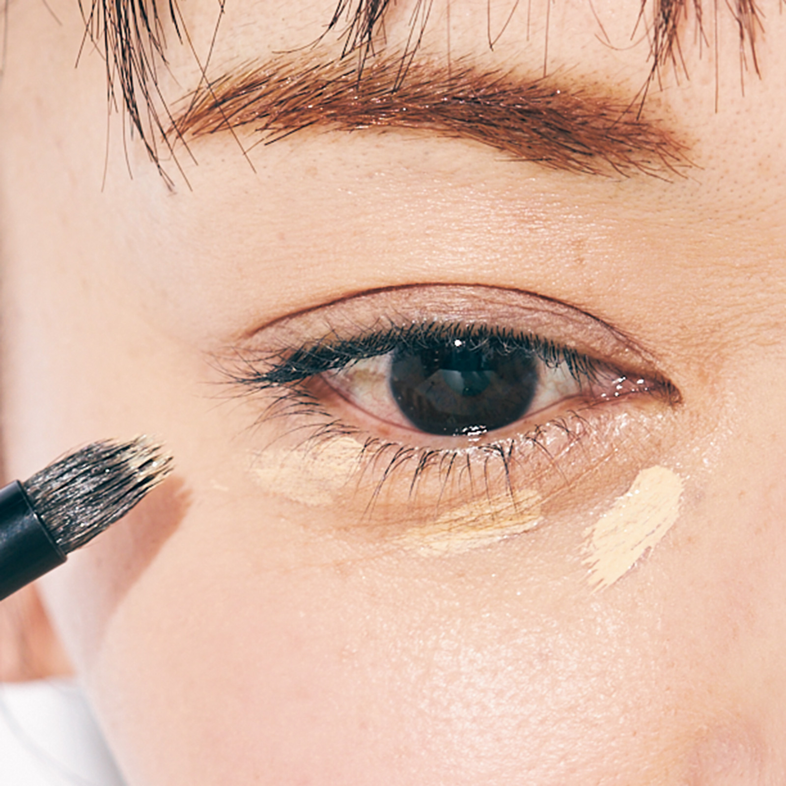 1.クマには内側から放射線状に置き、中指の腹でトントンと優しく馴染ませて。指で広げるように塗るのは×。