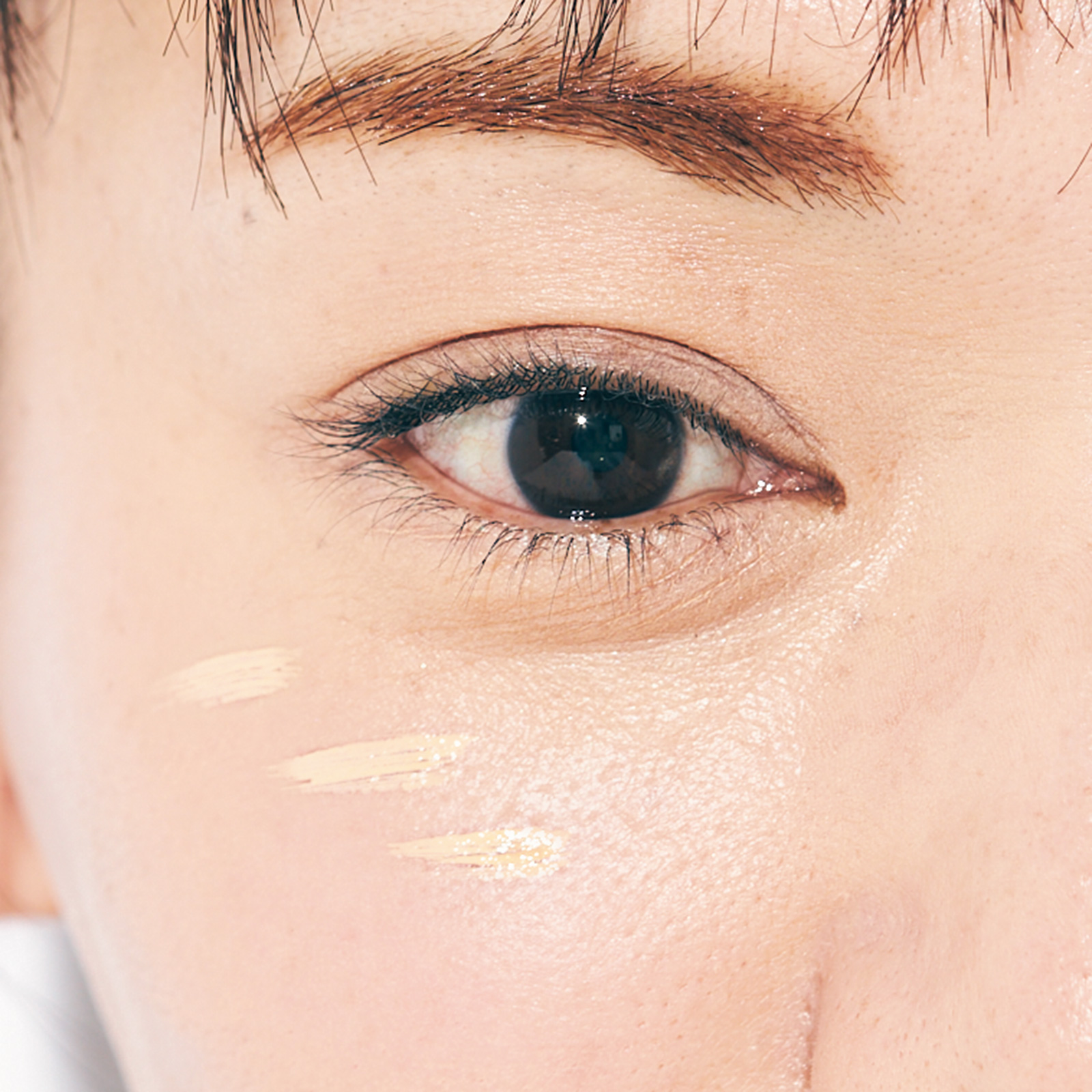 乾燥や花粉で肌の抵抗力が落ちるとザラついたり、敏感な状態に傾いてしまいます。そんな時はスキンケア処方のクリームコンシーラーをプラスして。肌への密着も良いので無重力肌と相性抜群。ナチュラルなのにしっかりカバーしてくれます。薄膜で透明感と素肌感を引き立ててくれて、厚塗り感のない軽やかな仕上がりになります。