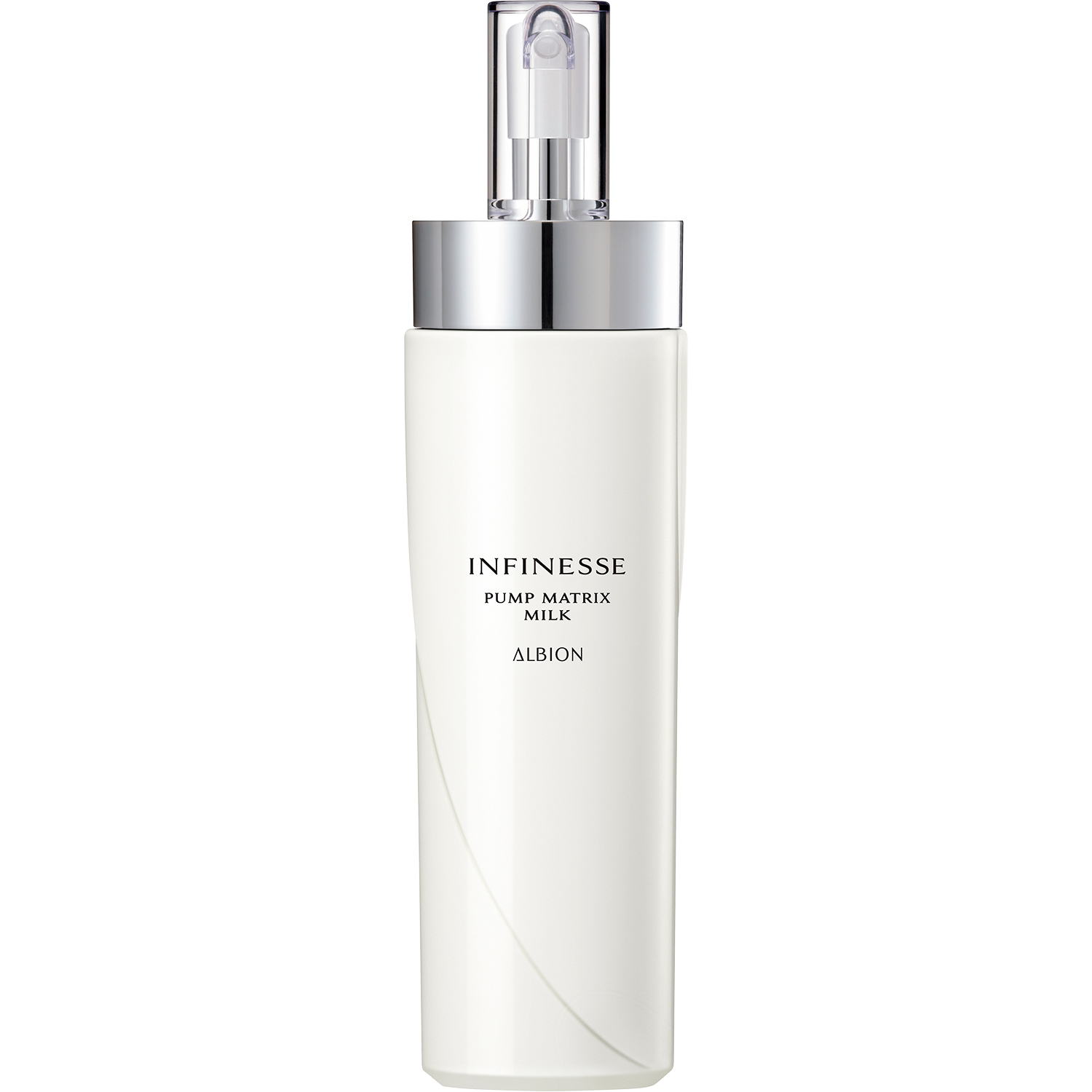 アルビオンがコラーゲン研究の新領域に挑んだ先行乳液。洗顔直後の角層の潤いバランスを整え、つけるとすぐに弾むようなハリを感じられ、フローラドリップ sの前に使用することで、よりハリ肌へと導く。アンフィネス パンプ マトリクス ミルク200g ¥7,700(アルビオン)