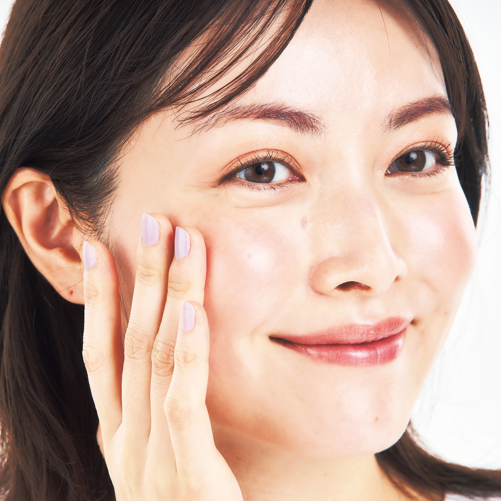 アイシャドウでも使用できるマルチカラーを小鼻から耳に向けて俵形に。よりナチュラルな血色で赤みもカバー。