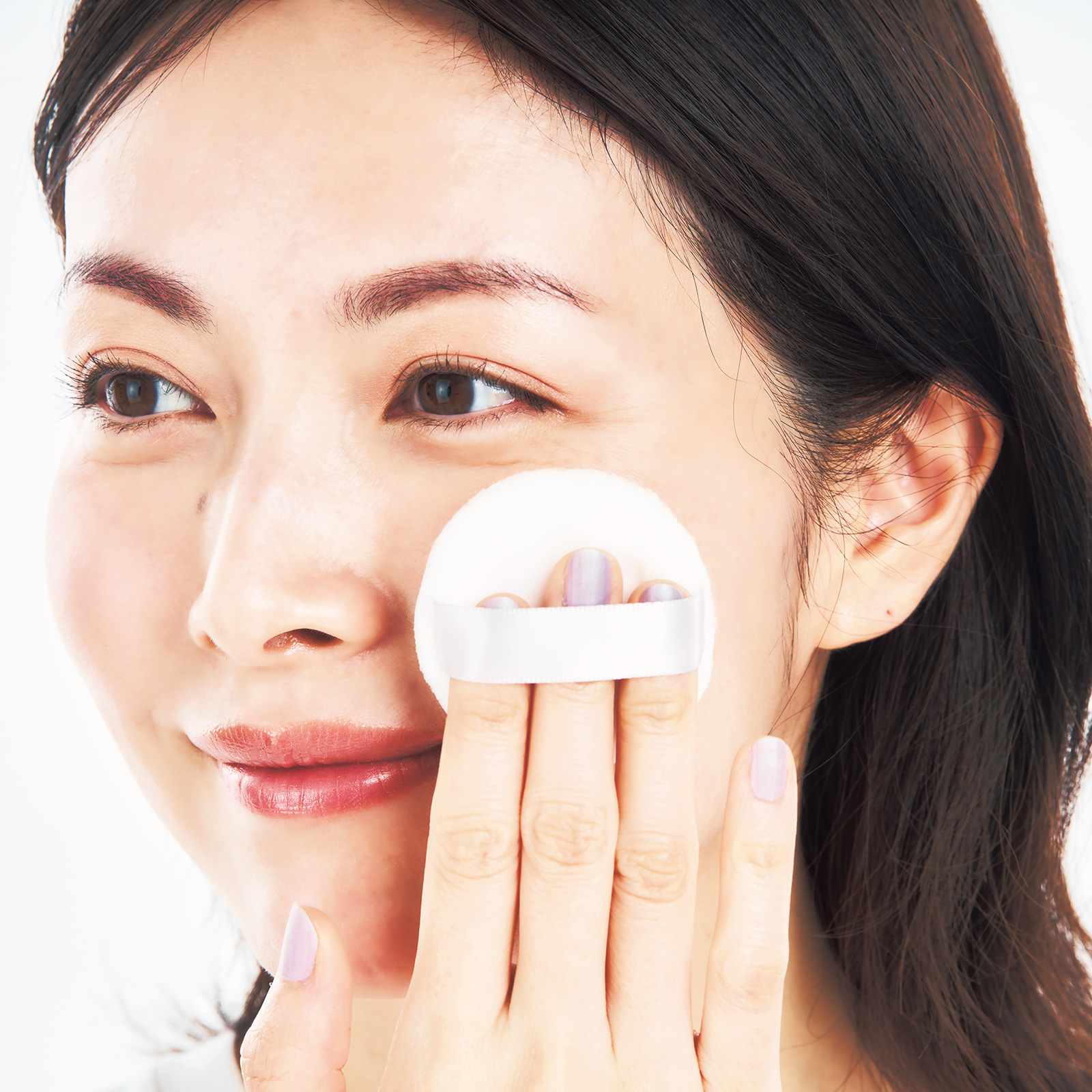 全体に満遍なくのせて花粉やほこりからしっかりガード。頰高部分と赤みが気になる箇所には重ねづけを。