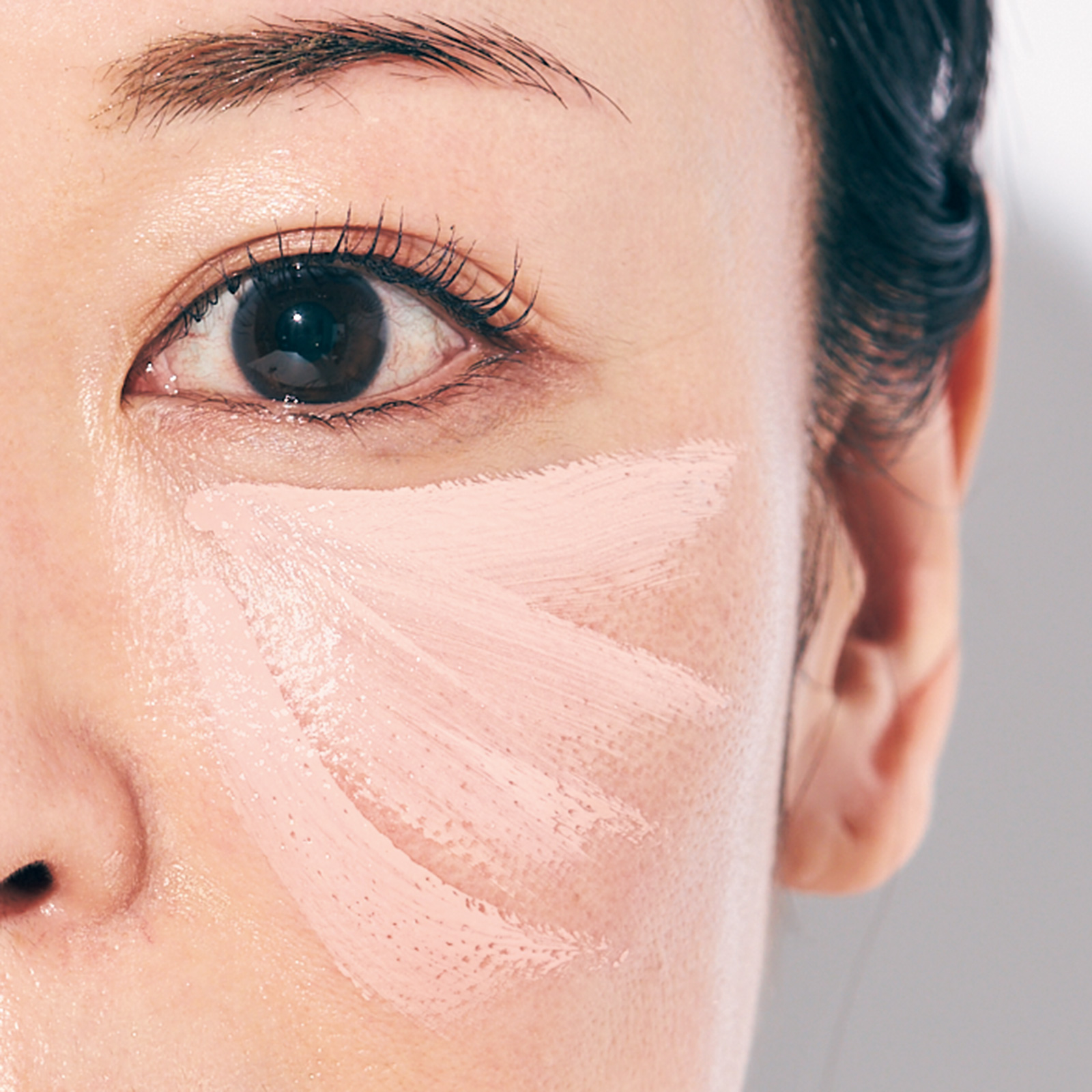 赤みが気になるところには補色であるブルーやグリーンなど、寒色系で透明感をアップさせますが、美ST世代には少し冷たくてさみしい印象になることも。とくに無重力肌の場合はより肌馴染みを重視したいので、あえて赤みに合わせたピンクを選ぶことで、素肌を整えるように血色感とツヤを与えるのがベスト。柔らかで華やかな印象になります。