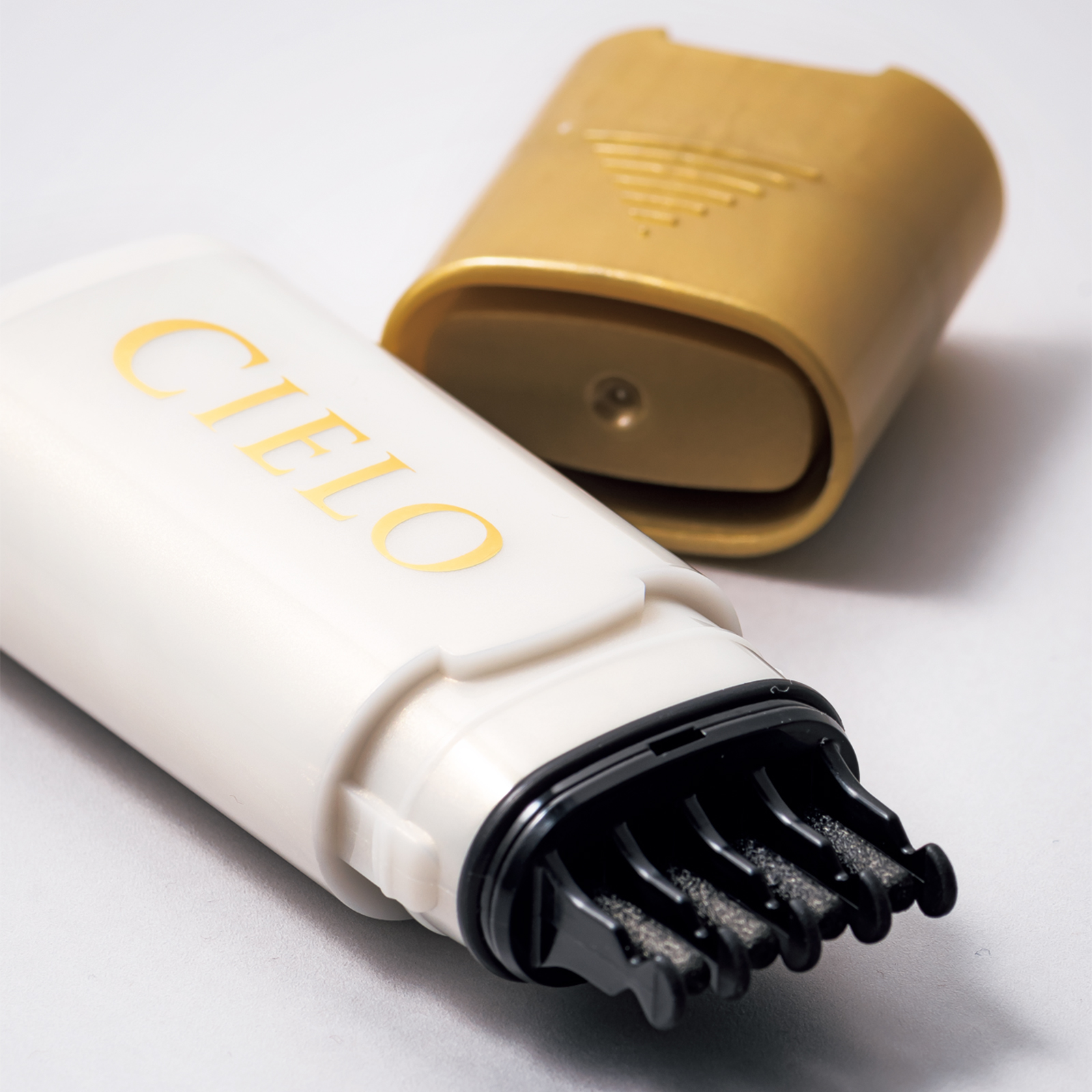 約2cm幅のクシ形でマーカー部分がクシ部分よりも短くなっている構造なので、地肌に液がつきにくいのがイチ推しの理由。液もダマにならず均等に塗れる。うるおい成分のツバキ種子エキス配合で、ふわっと優しい香りがするのも嬉しい。使用カラー:ナチュラルブラック。全4色展開。