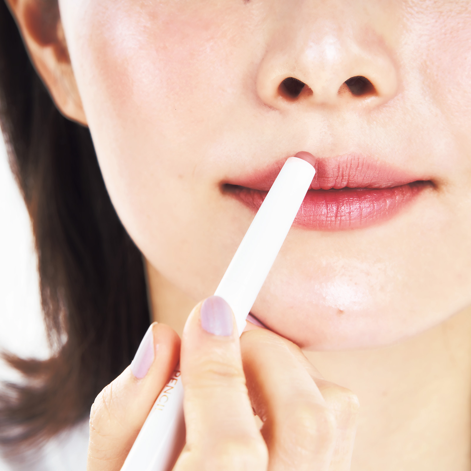 マスクなどでヨレがちなエッジはリップペンシルを使うとキレイにレタッチ可能。細かな部分もサッと塗れます。