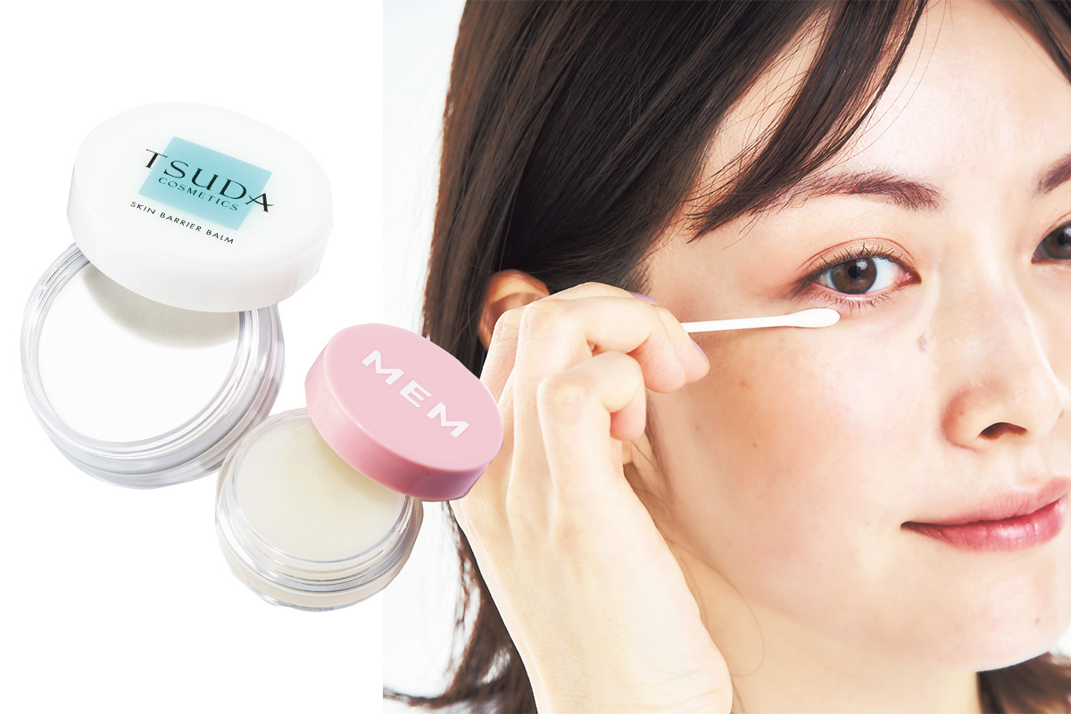 ヨレを拭き取ったらバームをプラスし保湿。面ではなく点で保湿できるバームはこの時期マスト。その後コンシーラーでカバー。
