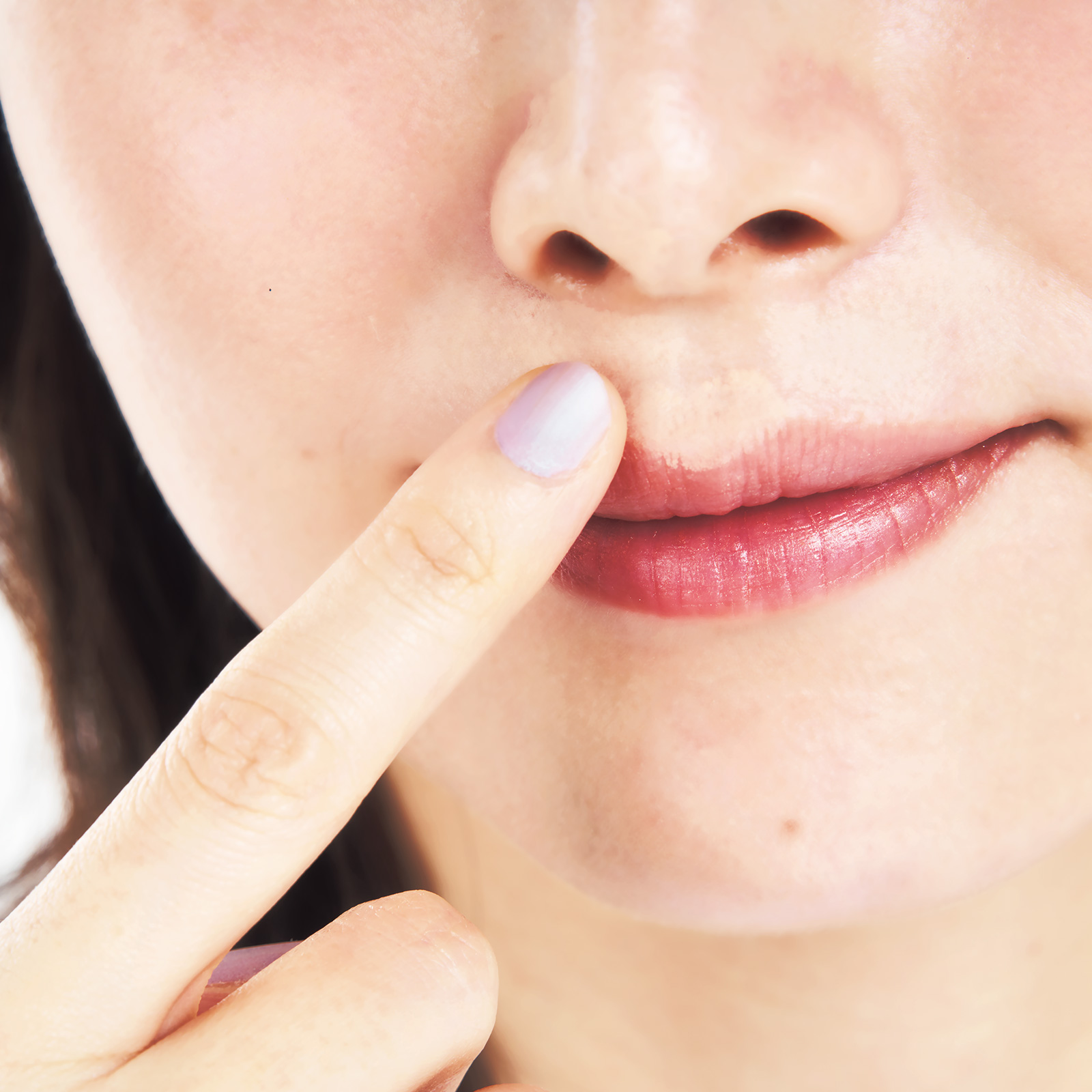 デリケートで皮向けしやすいエリアなので、鼻をかんだ後はこまめにバームで保湿を。うるおわせることで化粧直しも時短に。