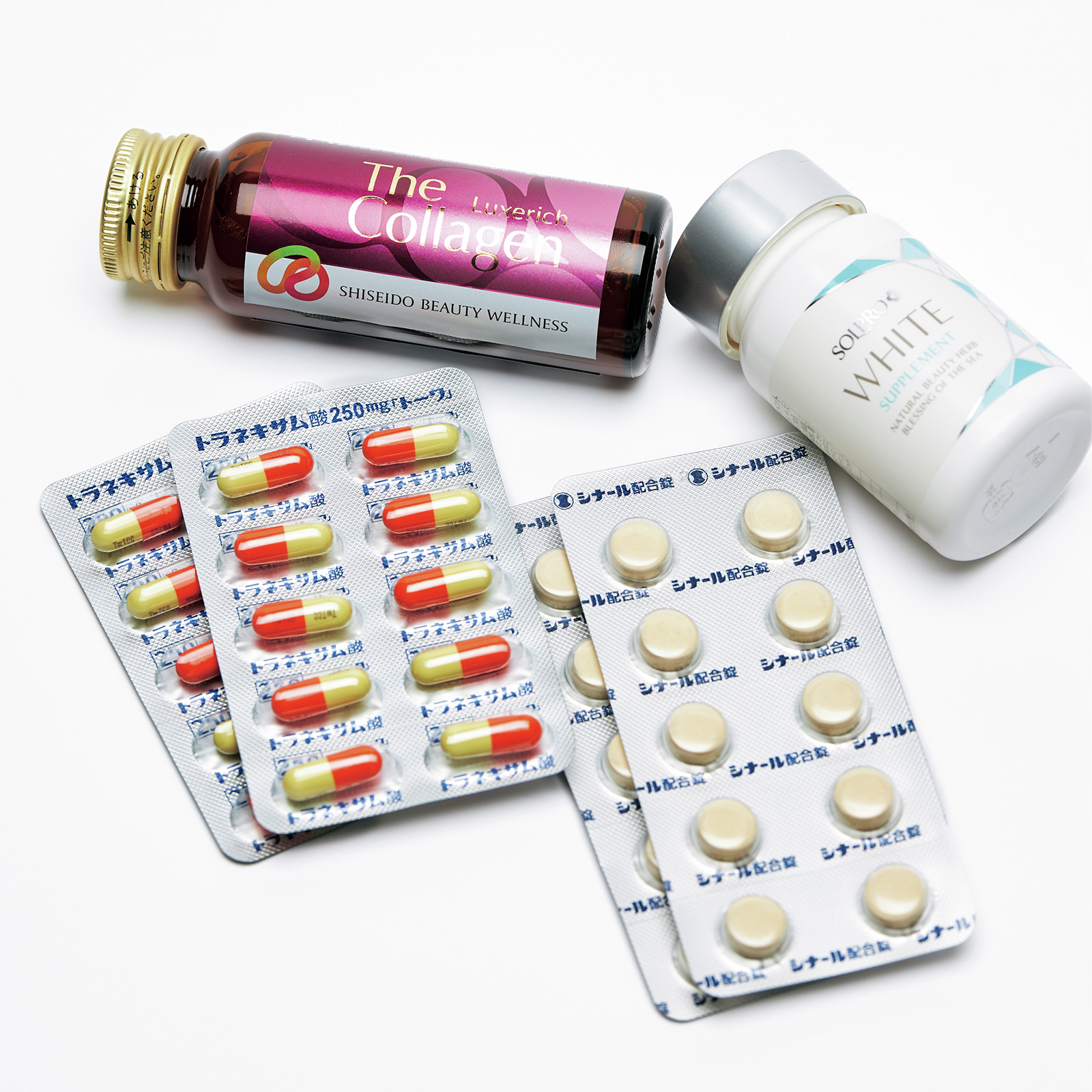 資生堂のザ・コラーゲンは美容成分が倍増したリュクスリッチを、トラネキサム酸などのサプリも美白のために毎日欠かさず愛飲。