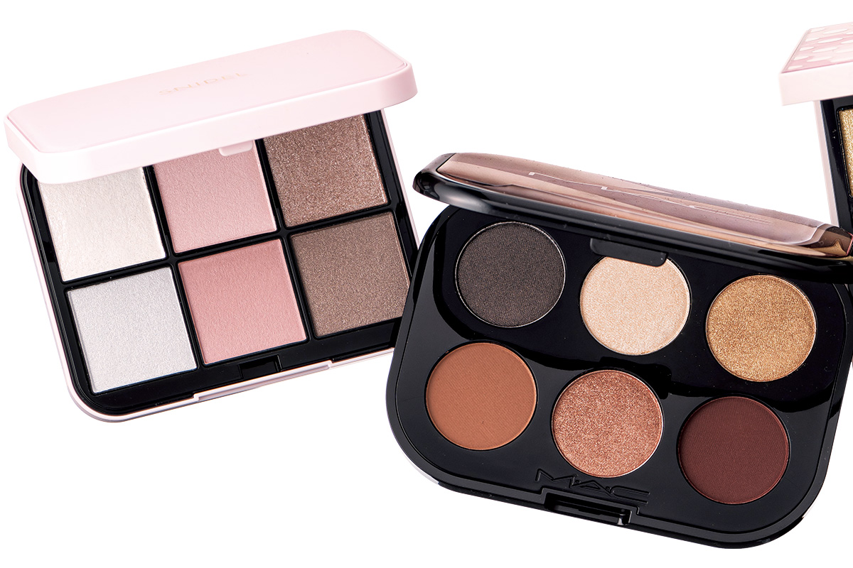 左から:くすみニュアンスカラーと透明感のあるラメが使いやすさ抜群。SNIDEL アイデザイナー n 04 ¥6,600(スナイデル ビューティ)王道カラーながらもほんのり色っぽい。コネクト イン カラー アイシャドウ パレット×6: ヌード ボード ¥7,700(M・A・C)