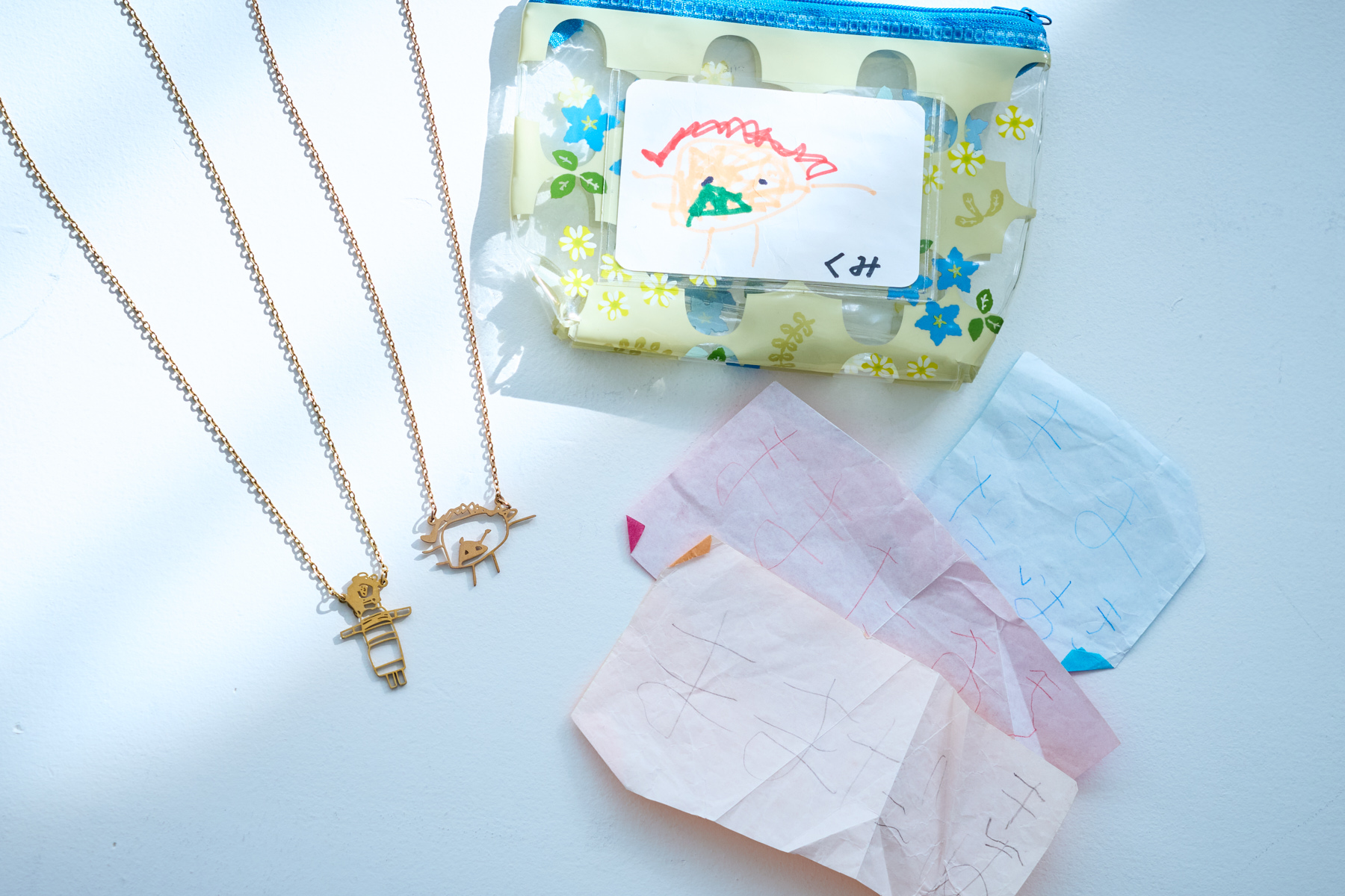 それから、次男が幼稚園で私を描いてくれた絵があるのですが、ある時インスタを眺めていたら、描いた絵をペンダントにしてくれる業者さんの広告を見つけたんです。すごく素敵だなと思ってすぐにお願いしちゃいました!今では仕事に行く時や頑張り時だなと思う時に身につけていますが、勇気が湧いてスーパーマンになれたような気がします。