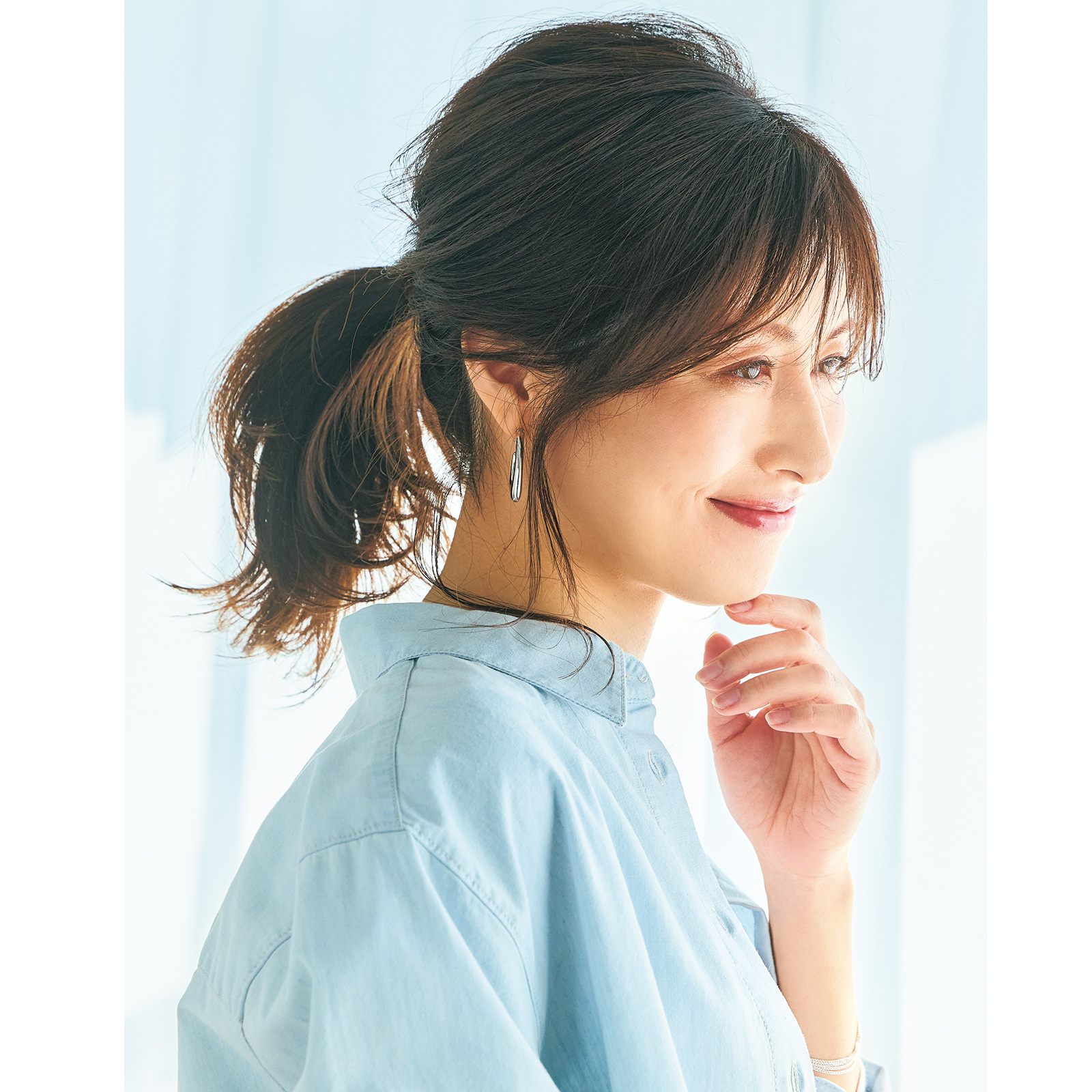 あなたの髪型、数年前から止まっていませんか?いつものヘアに頼らず、40代からもっと輝く最新スタイルに更新を!今回は「結んでも小顔に見えるカット」をご紹介。