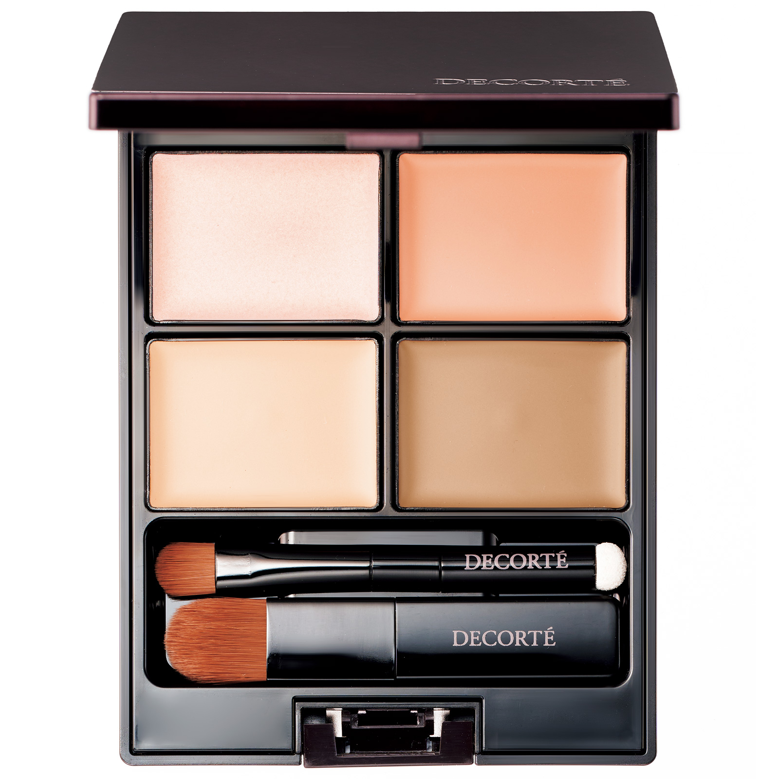 右上のオレンジを使用。肌に溶け込むように密着し、長時間キレイにカバー。コスメデコルテ トーンパーフェクティング パレット 02 ¥4,950(コスメデコルテ)