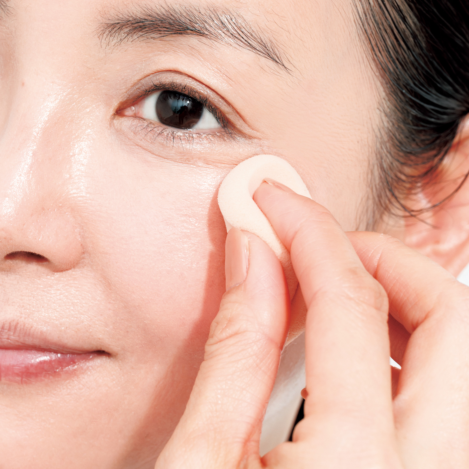表情の変化で動きが多く皮ふも薄めな目元は、シミ対応に特化したファンデを使うのも得策。厚塗りやひび割れすることなく自然にカバーできます。肌色よりワントーン暗い色を選ぶと、シミが透けないのでおすすめ。