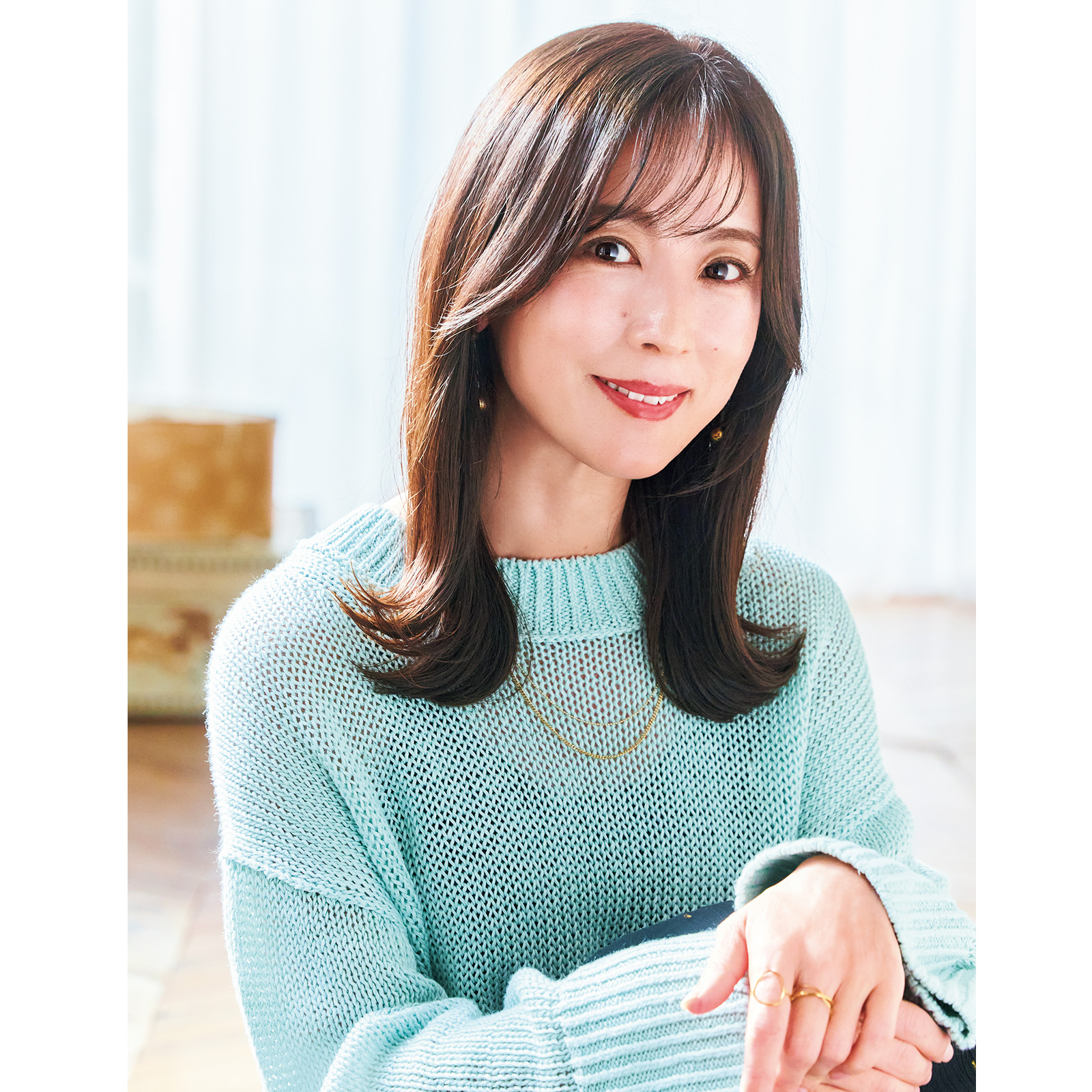 〈衣装クレジット〉ニット¥22,000(バナナ・リパブリック)スカート¥9,990(アンフィーロ)ピアス¥2,420 2連ネックレス¥1,815リング[2個セット]¥4,400(すべてアネモネ/サンポークリエイト)