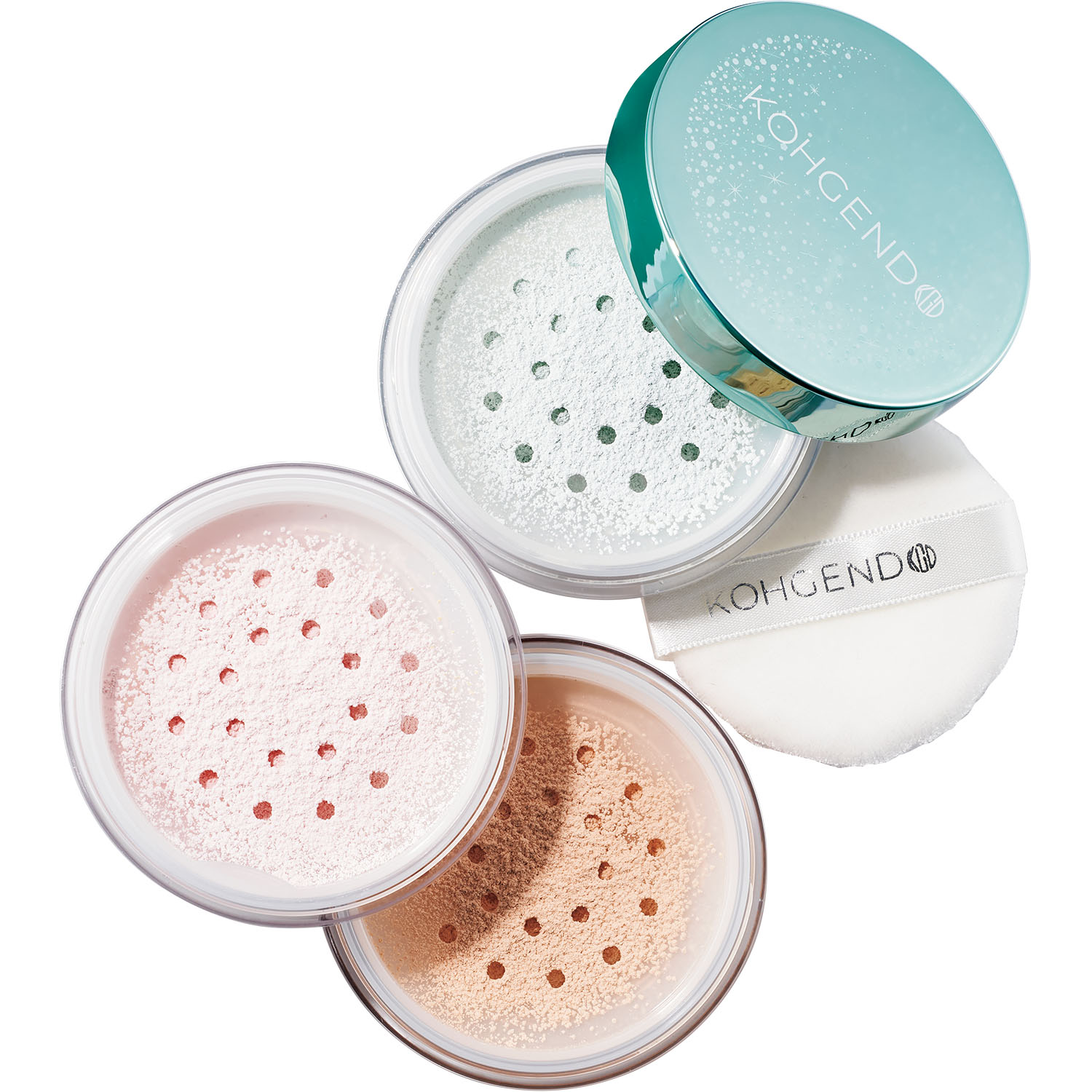毎年人気のパウダーに新色が追加。UVフェイスパウダー(上から)ミントラテ、ベビーピンク、ソフトベージュ SPF50+・PA+ +++ 各6g 各¥2,970<専用パフ付き>※数量限定(Koh Gen Do)