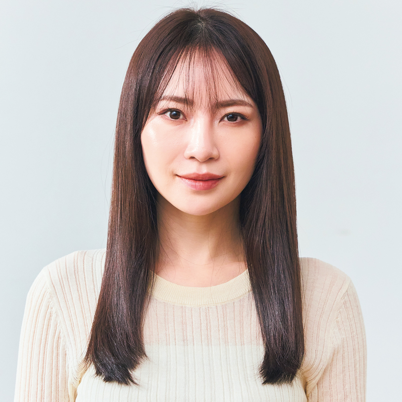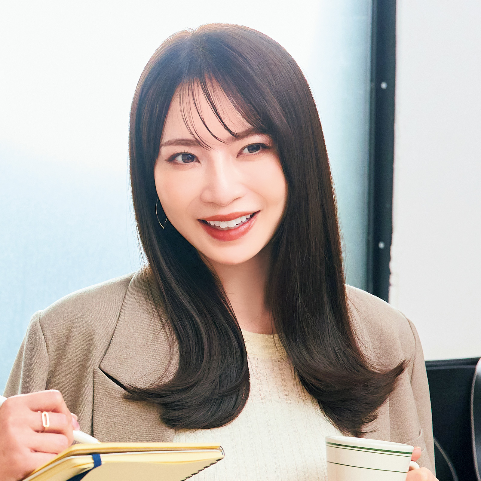 清潔感あるストレートヘアの毛先をハネさせて親しみやすさがアップ