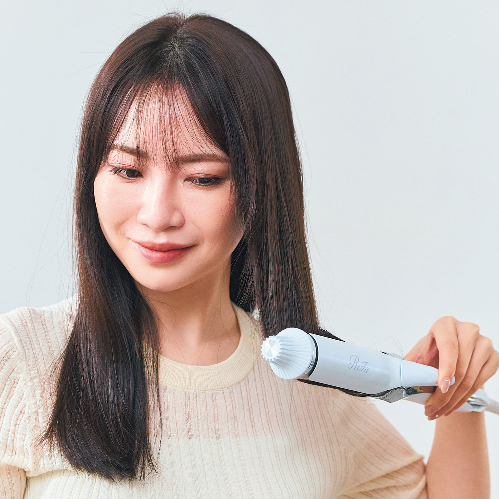 2.〈ロングヘアは38mmの太めが基本〉ロングを効率よく巻ける太め。リファカールアイロン プロ38〈ホワイト〉¥25,000(MTG)