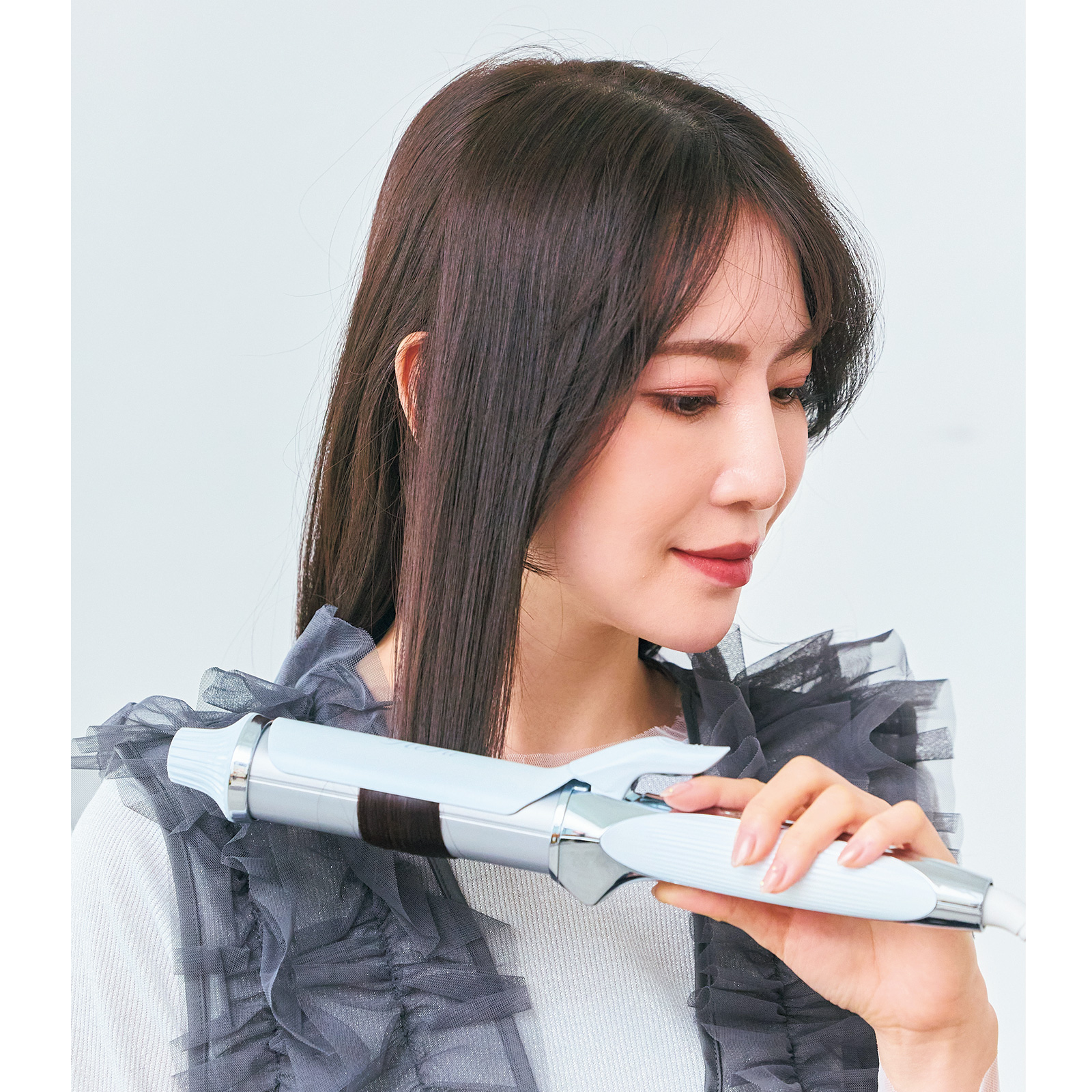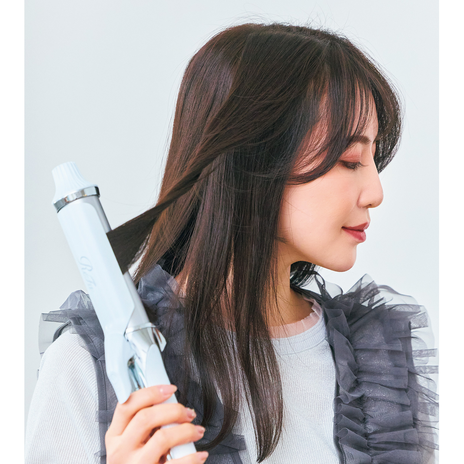 1.〈ロングヘアは38mmの太めが基本〉ロングを効率よく巻ける太め。リファカールアイロン プロ38〈ホワイト〉¥25,000(MTG)