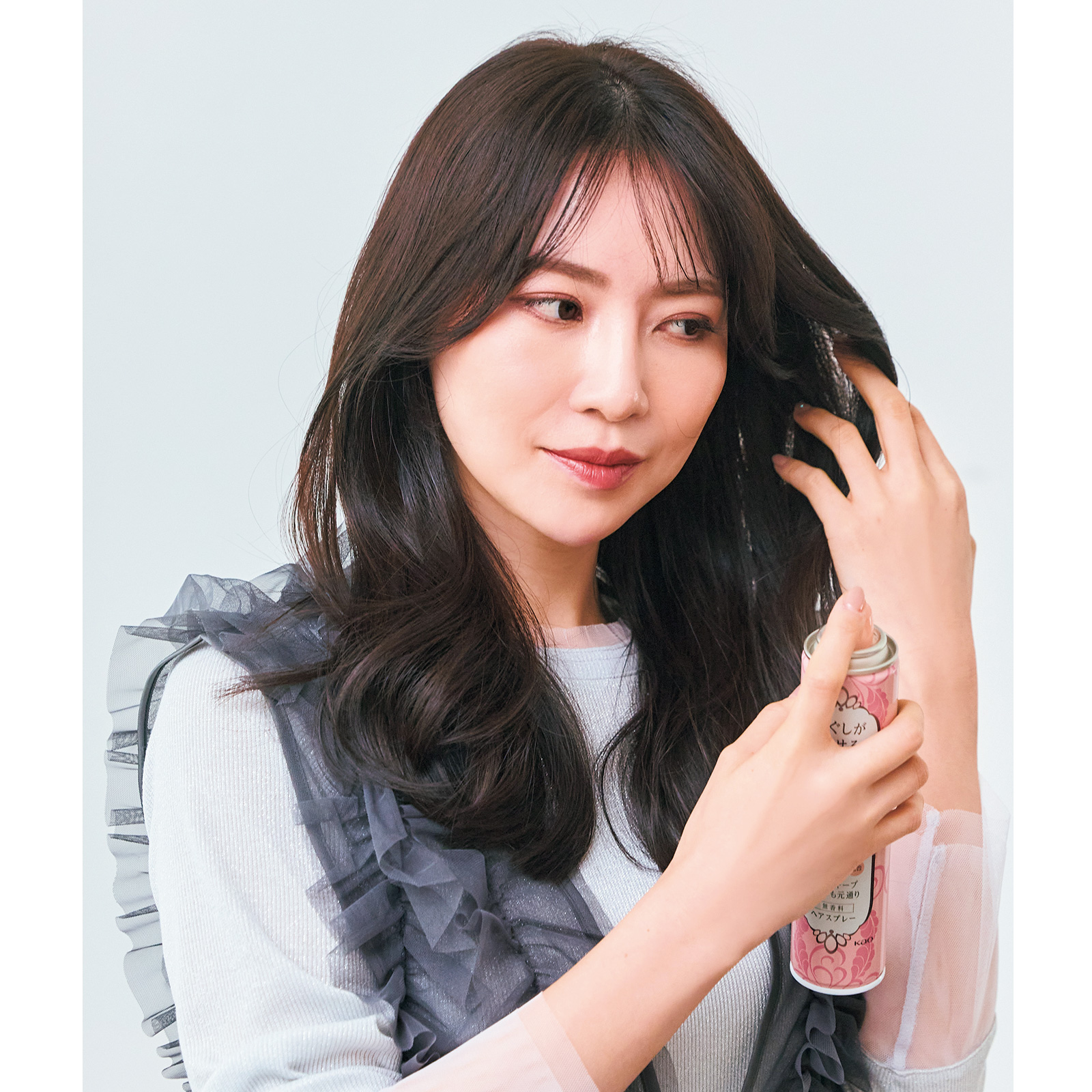 6.キープスプレーを全体にまんべんなく吹きかけます。内側の髪は、手ぐしで髪をかき上げるようにかけるのがコツ。