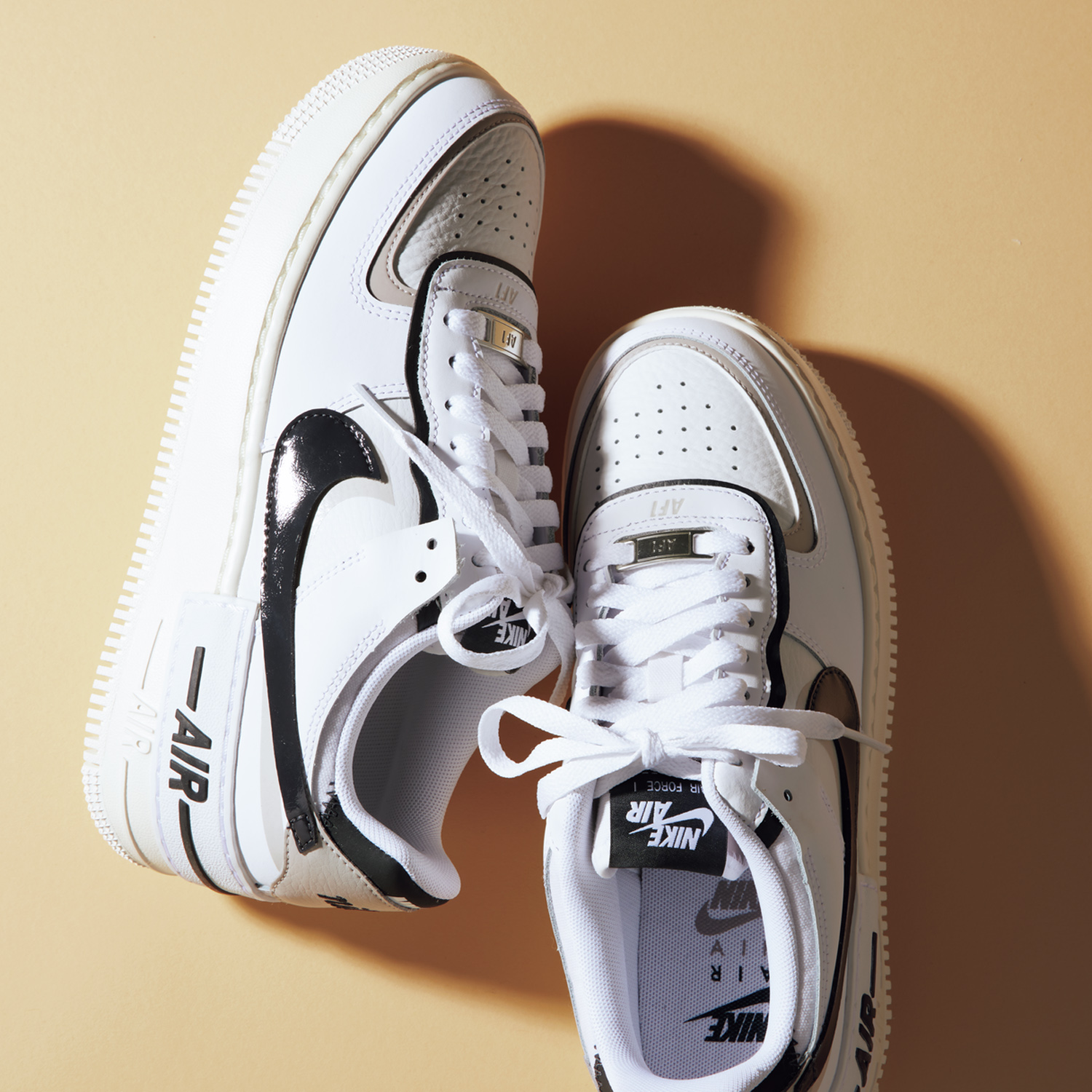 「エア フォース 1 シャドウ」は、バスケシューズならではのボリューム感と厚底。NIKEのロゴがブランド感を倍増します。スニーカー[H4.5cm]¥19,800(ナイキ スポーツウェア/NIKE カスタマーサービス)