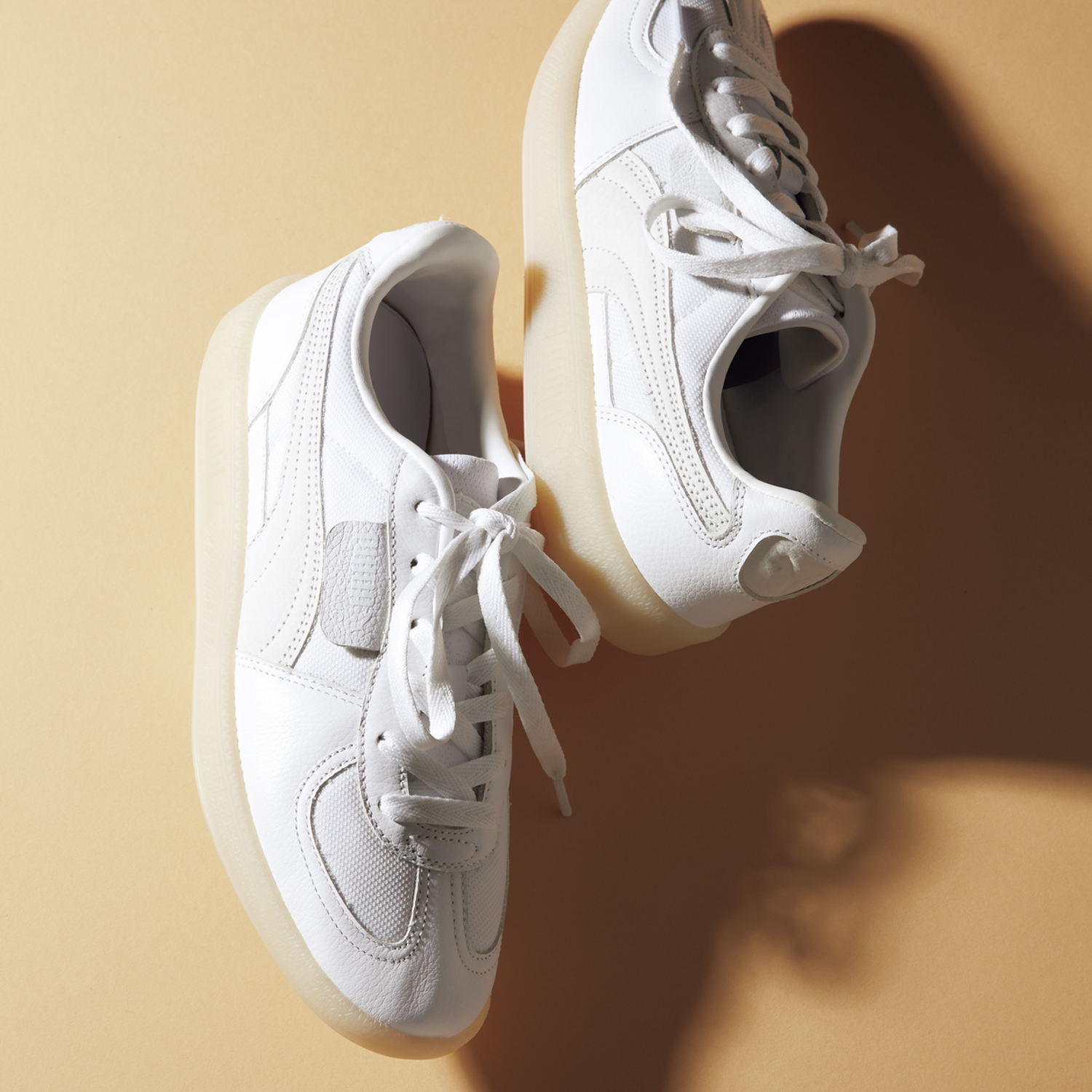 パレルモはガムソールの透け感が新鮮です。クラシックなモデルで細身のホワイトは、スーツにも浮かないキレイめデザインです。スニーカー[H3cm(編集部調べ)]¥14,850(プーマ/プーマ お客様サービス)