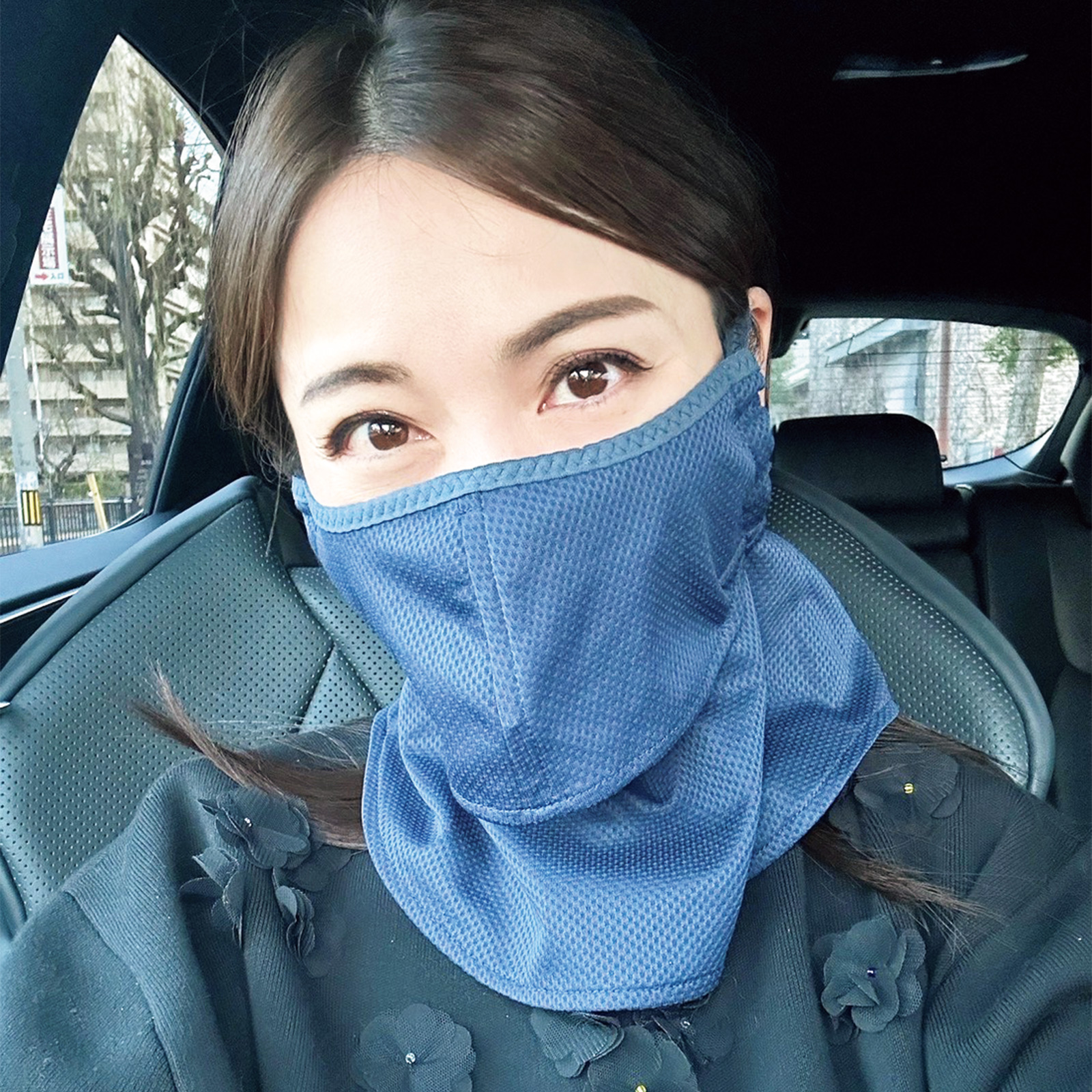 子どもの送迎など車移動が多いので、日焼けしないようにフェイスマスクとサングラスを常備。