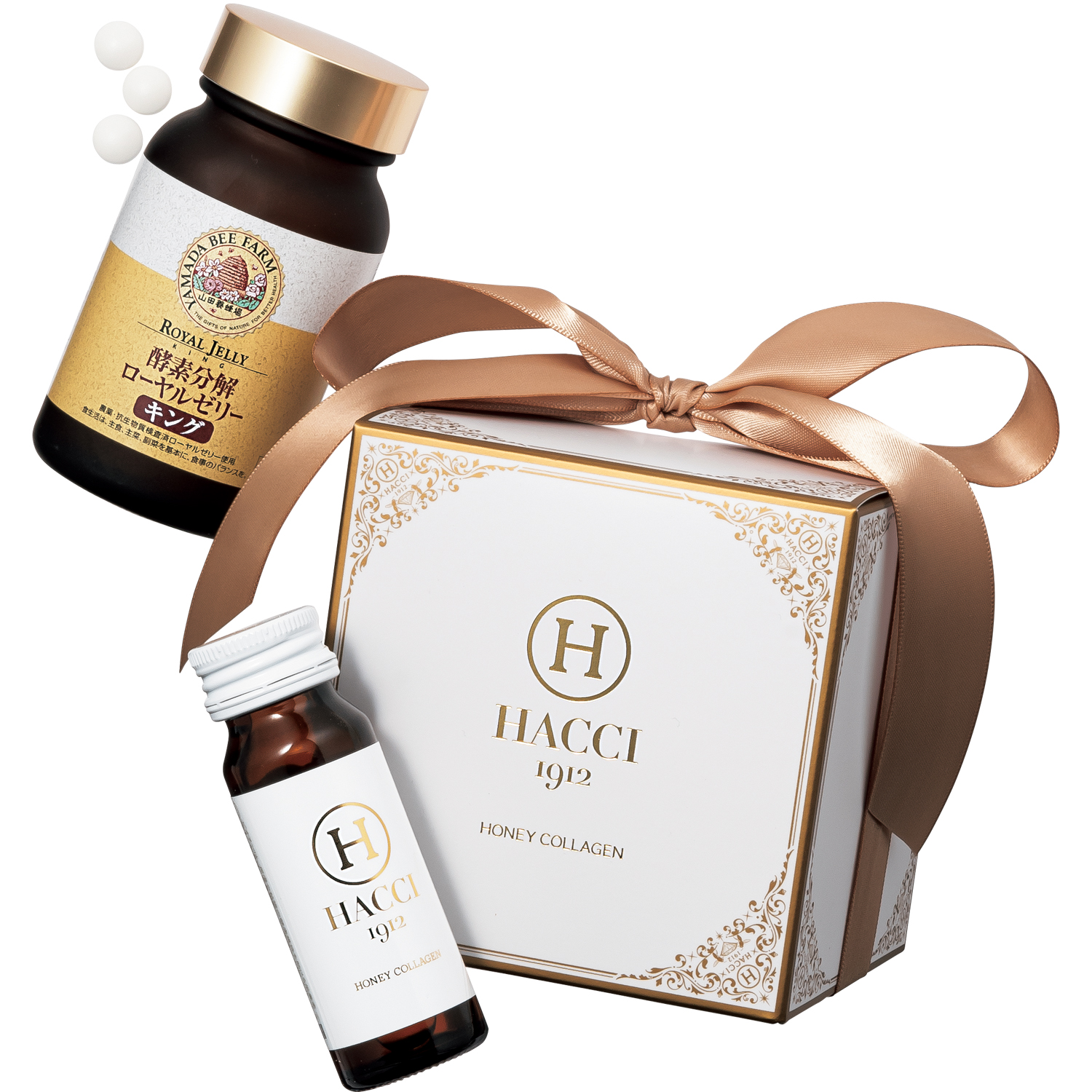 高品質ローヤルゼリーを酵素分解技術で吸収しやすく。体のベースを整えて内側から潤い美肌に。酵素分解ローヤルゼリーキング 100粒入り ¥7,668(山田養蜂場)