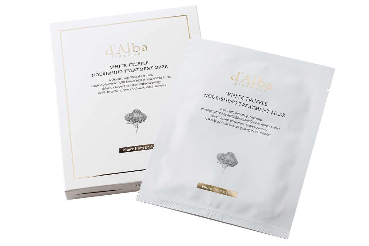 その日のうちに肌ダメージをケア。ダルバのシートマスクはホワイトトリュフ成分の美容液がひたひた。肌が潤いで満たされます。