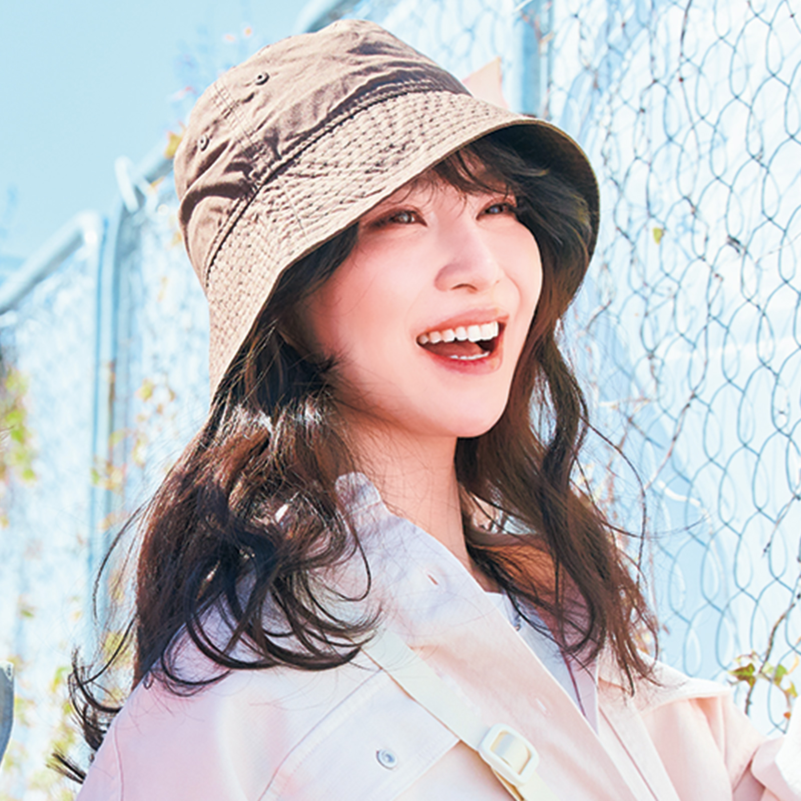 バケットハット¥5,280(ニューエラ)シャツ¥19,800(ヘルシーデニム/ゲストリスト)Tシャツ¥3,190(フルーツオブザルーム/ギャレット)ネックレス¥3,630(アネモネ/サンポークリエイト)バッグ¥13,200(グレゴリー/サムソナイト・ジャパン)