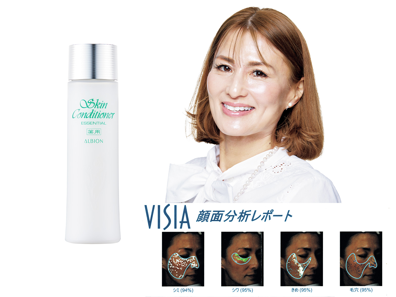 ひどい肌荒れに悩んだのが24歳の時。当時の会社の先輩がアルビオンに連れて行ってくれました。それがきっかけでスキコンを使い始めてからはまさにアルビオン中毒です(笑)。赤みが出やすい私の肌を鎮静してくれ肌トラブルも解消。50代になってもシミが肉眼ではほとんど気にならない肌でいられるのもスキコンのおかげだと信じています!