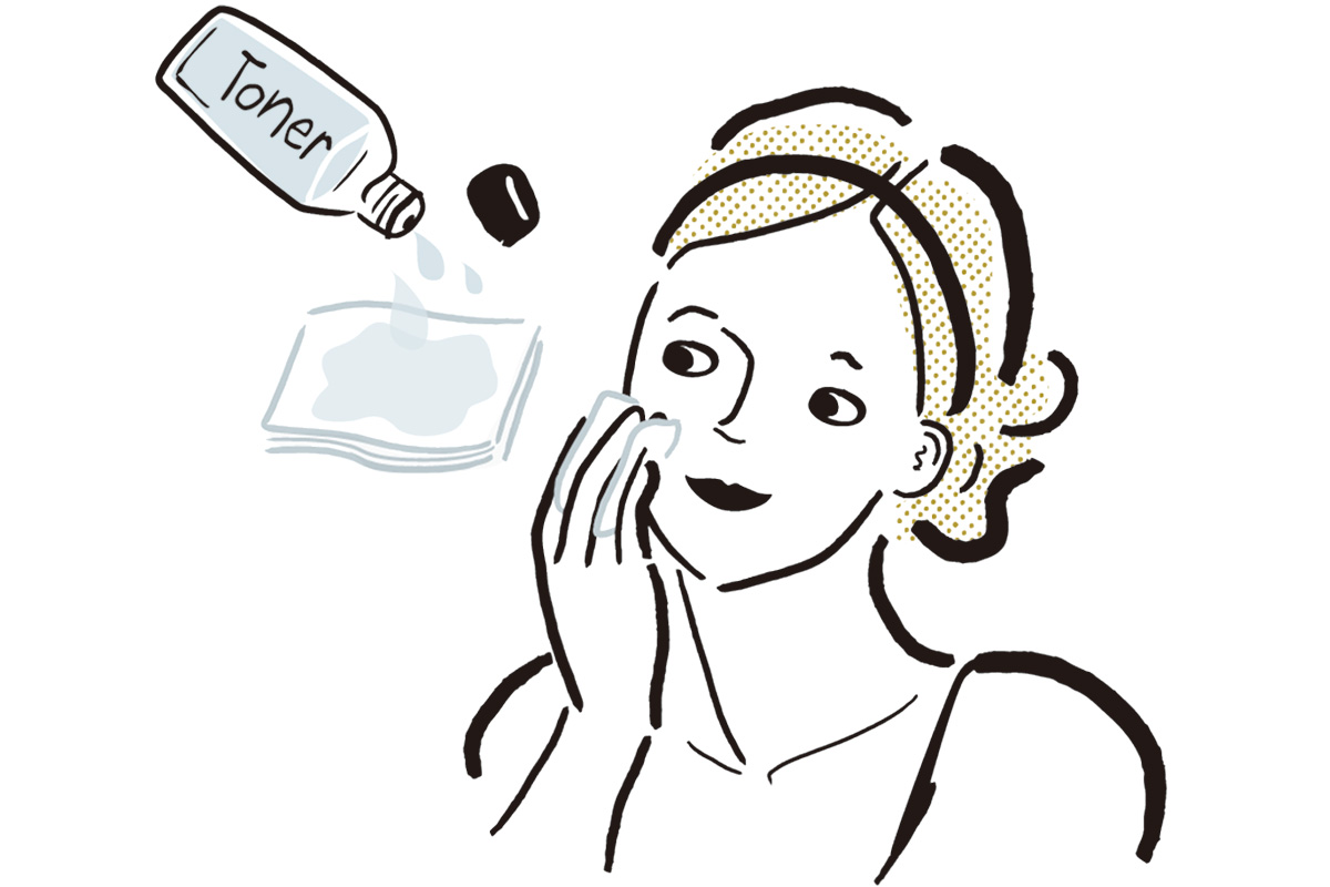 肌摩擦はくすみやシミの原因に。美容液をたっぷりコットンにとり、肌とのクッションにして力を入れず優しく拭き取りを。
