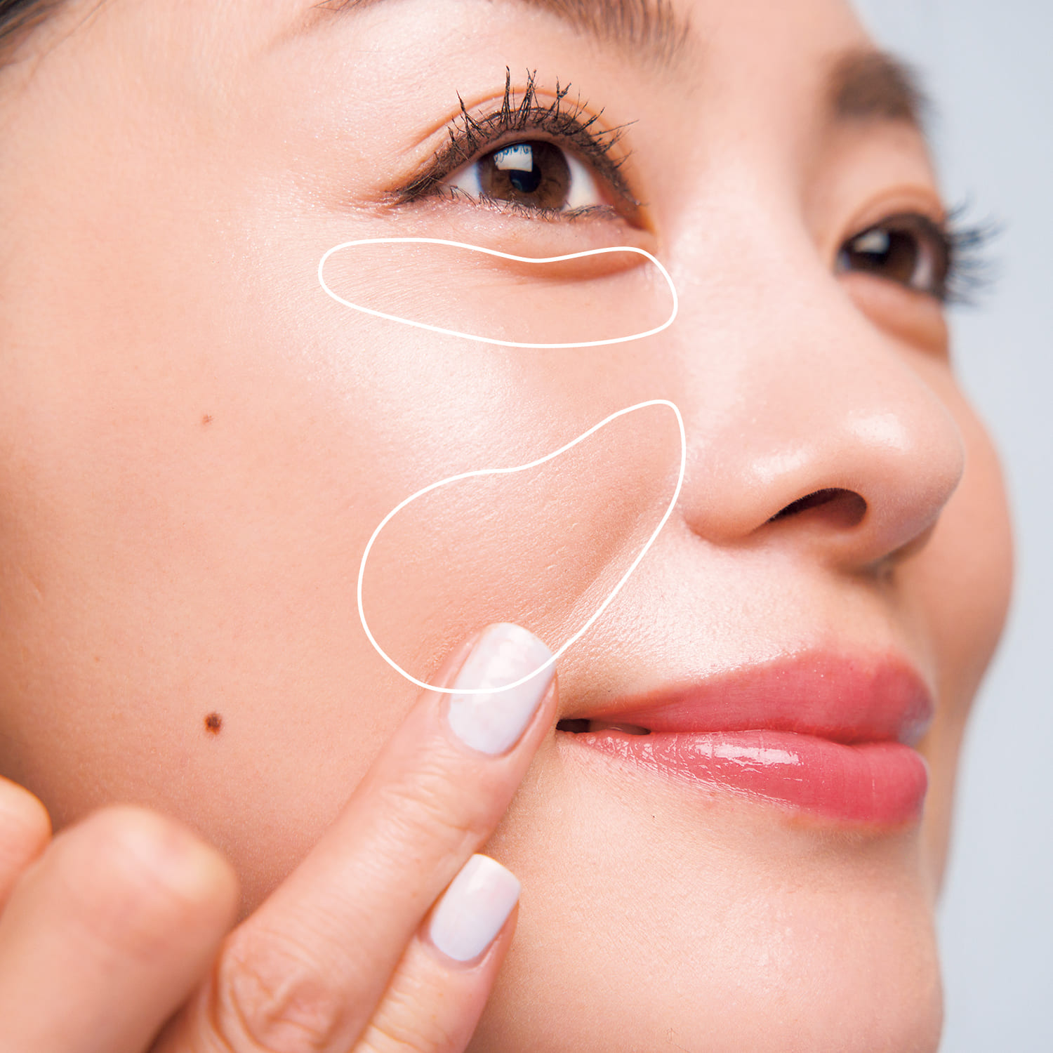 「保湿はアイクリームにお任せ。乾燥する箇所にのせると、毛穴も隠せて血色感も増加。頰が引き上がった印象に」