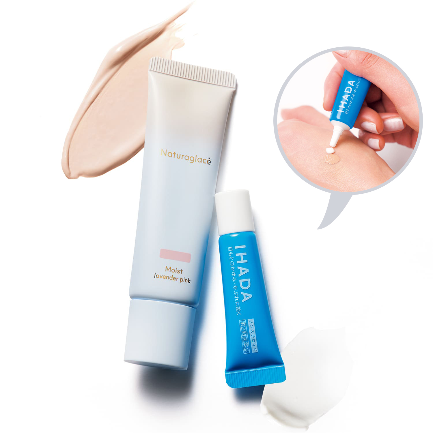 左:メイクアップクリーム モイスト 03 SPF50+ PA+++ 30g ¥3,850(ナチュラグラッセ)右:イハダ プリスクリード i[第2類医薬品]6g ¥990<編集部調べ>(資生堂)