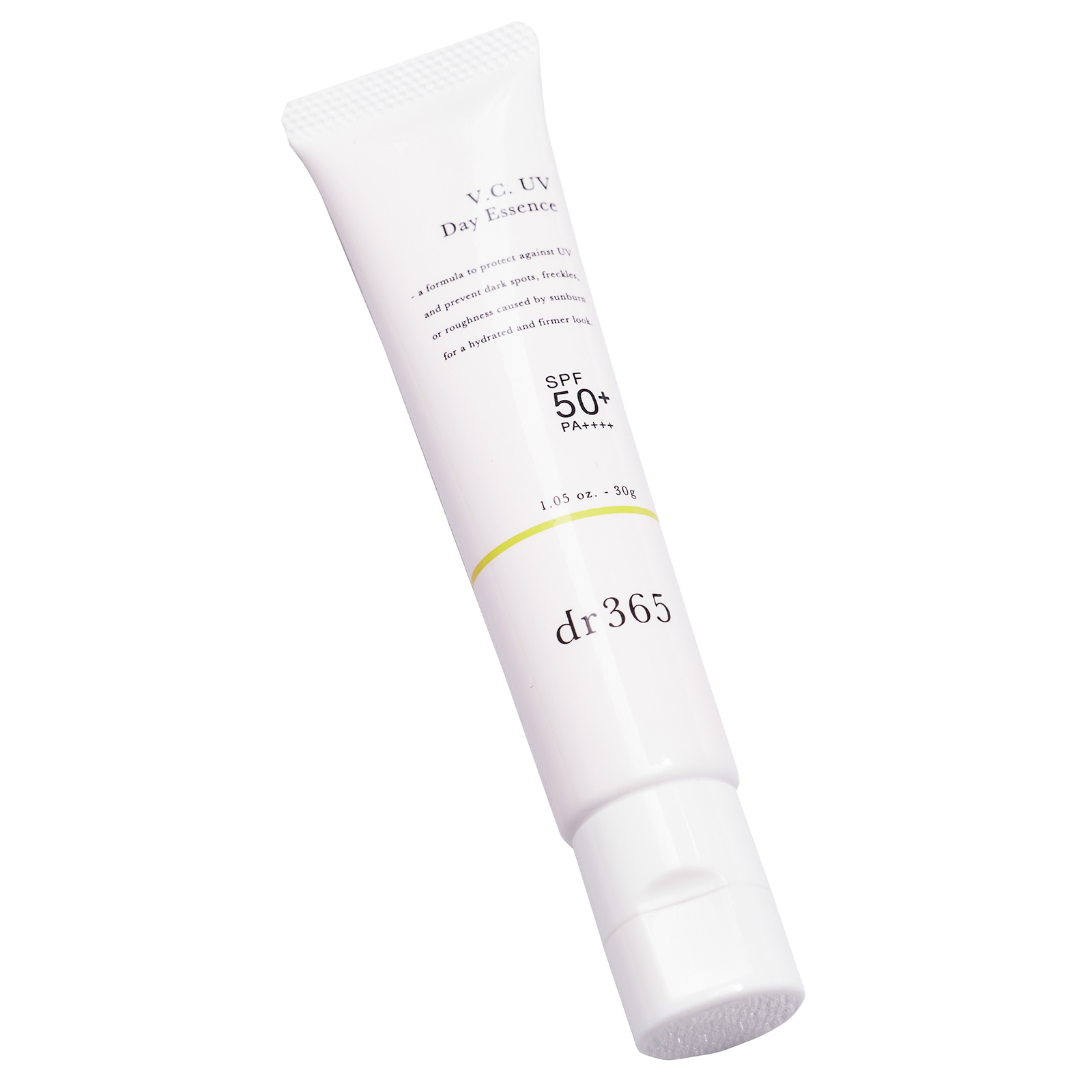 ほぼ美容成分で肌に負担にならない日焼け止めはメイクさんに教えてもらった、dr365 V.C. UVデイエッセンス。つけ心地もべたべたせず、どんなアイテムを上に重ねてもヨレないところが最高!