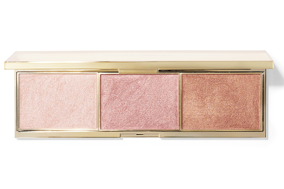 〈モデル使用〉左を使用。黄み系の色と繊細なパールが大人のくすみ肌を立体的に輝かす。ローラ メルシエ シマー アンド グロウ フェイス パレット ※数量限定 ¥8,030(ローラ メルシエ ジャパン)