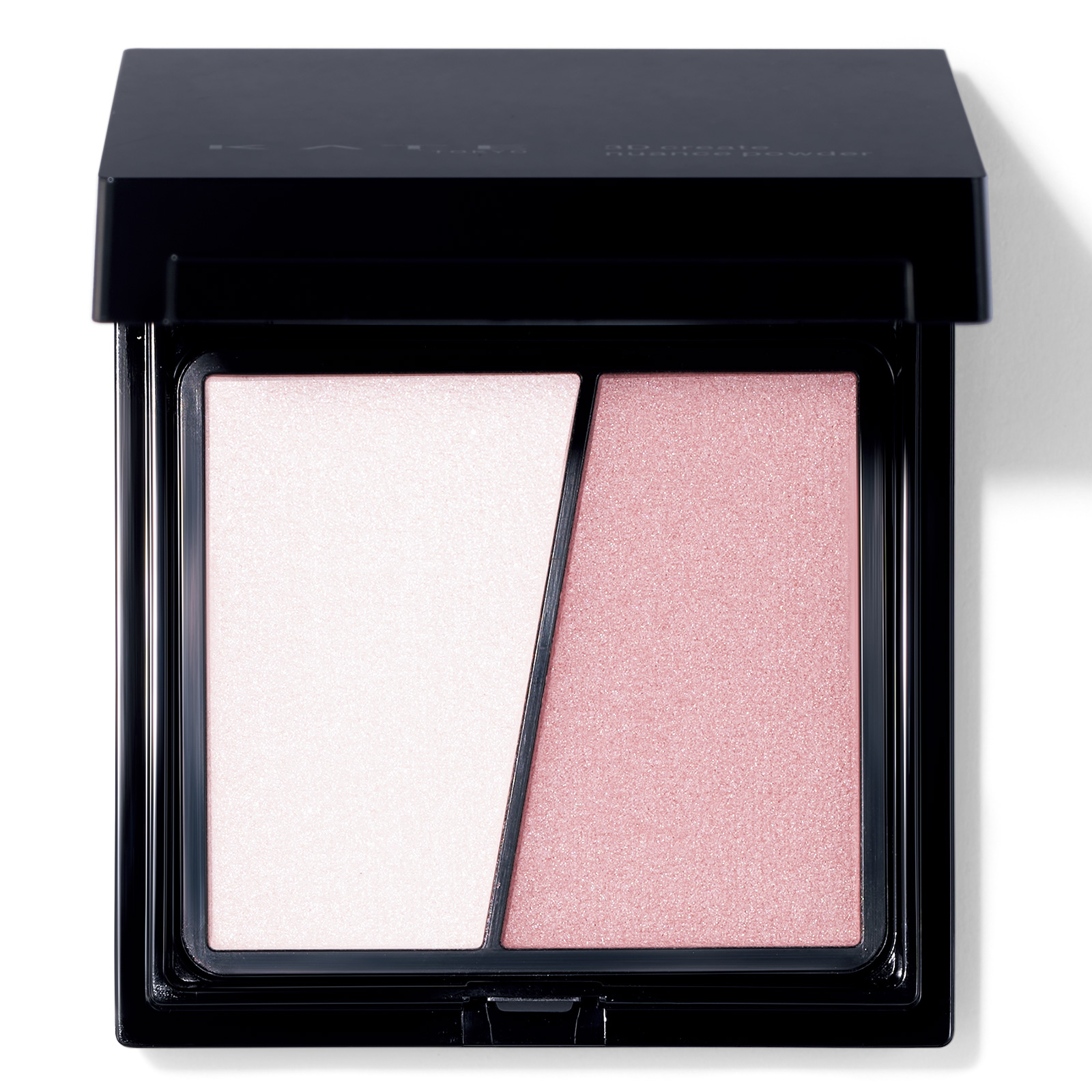 シアートーンブラッシュ オメガ(左)は赤みを抑えたトープカラー。柔らかな影を注入。スカルプト & グロウ デュオ ハイライト & コントアー パレット ¥4,620(M・A・C)