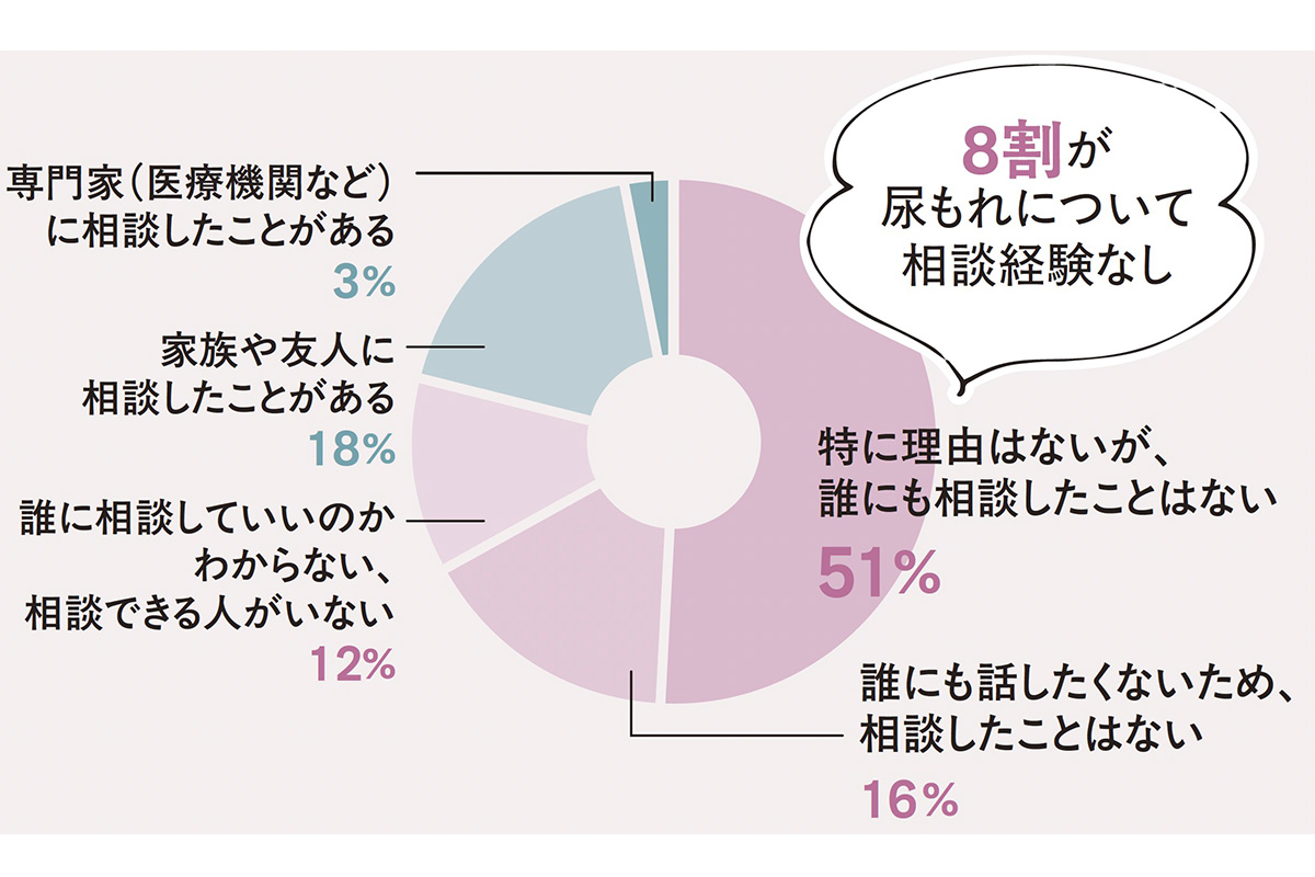 尿もれは自分自身どうしたら良いかわからず、誰に相談したら良いかもわからないまま過ごす人が多いようです。
