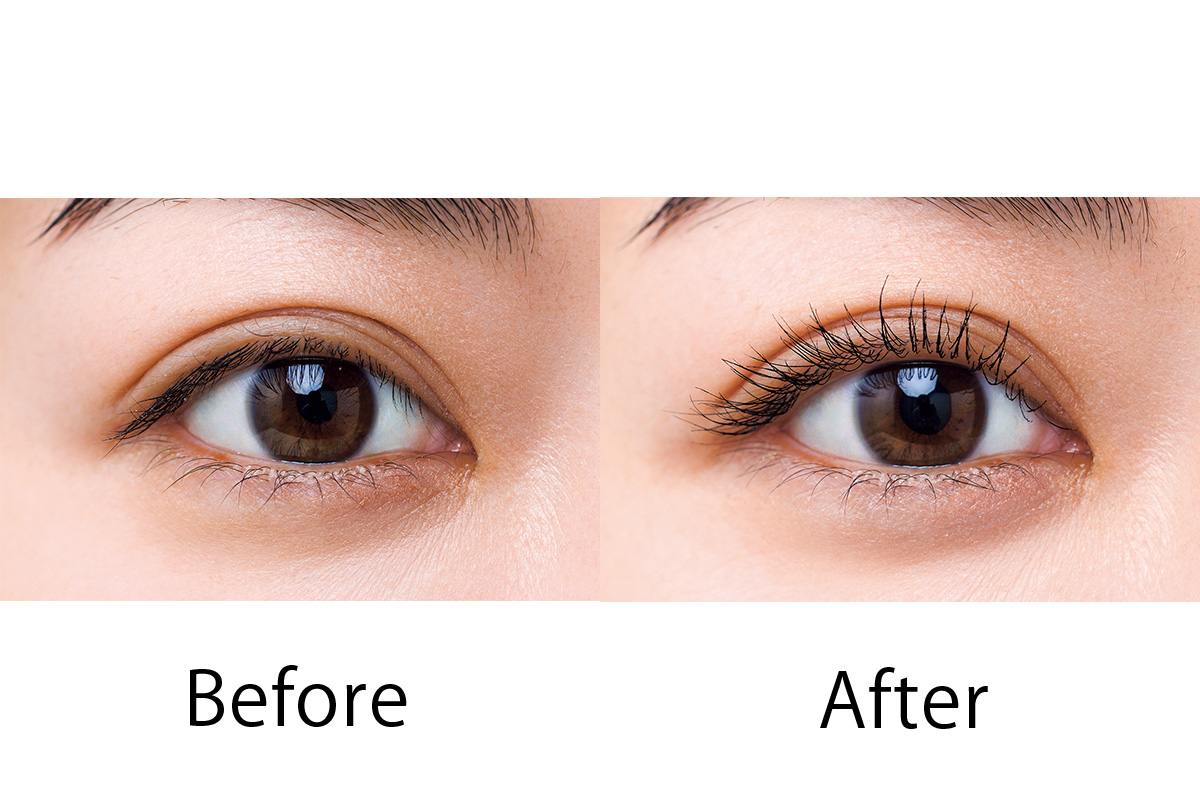 Cカールを描きスーッと上に伸びるような綺麗なセパレート感が理想。小回りが利く細ヘッドはキワにしっかり塗れることでアイライン効果も出て目力UP。先端で目頭や目尻、下まつ毛にも塗布でき◎。セパレートされたまつ毛から光が入り黒目もキラッと明るくなります。