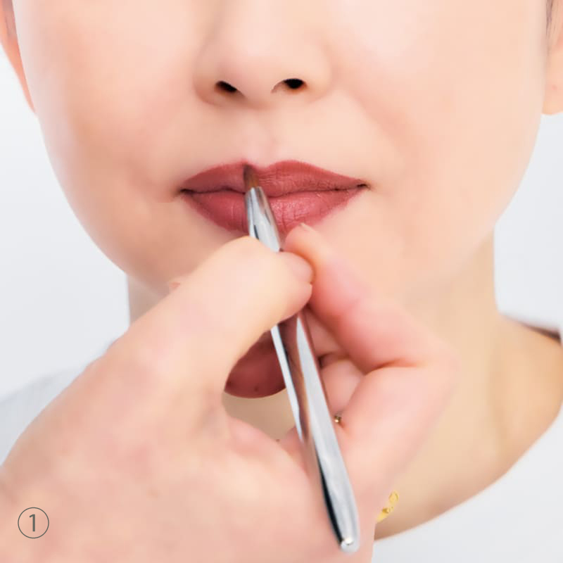 2:唇の中心が最も濃くなるように塗り重ねてふっくらと立体感アップ