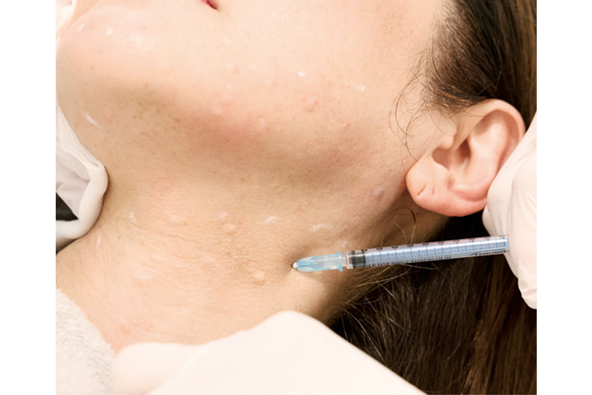 広頸筋にボトックスを打つと下向きに引っ張る力が抑えられ顔と首のラインがぼやけてたるんだフェイスラインを整えてくれます。フェイスラインには全体的に、唾液腺が発達している場合は唾液腺に打つことも。
