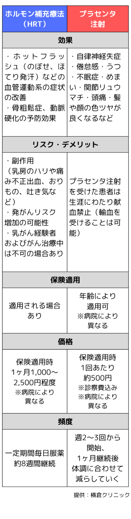 「私がまずおすすめしているのは、プラセンタ注射です。これは厚生労働省も更年期障害の治療として認可している医療用の注射で、年齢や病院によっては、保険がきくケースもあります。