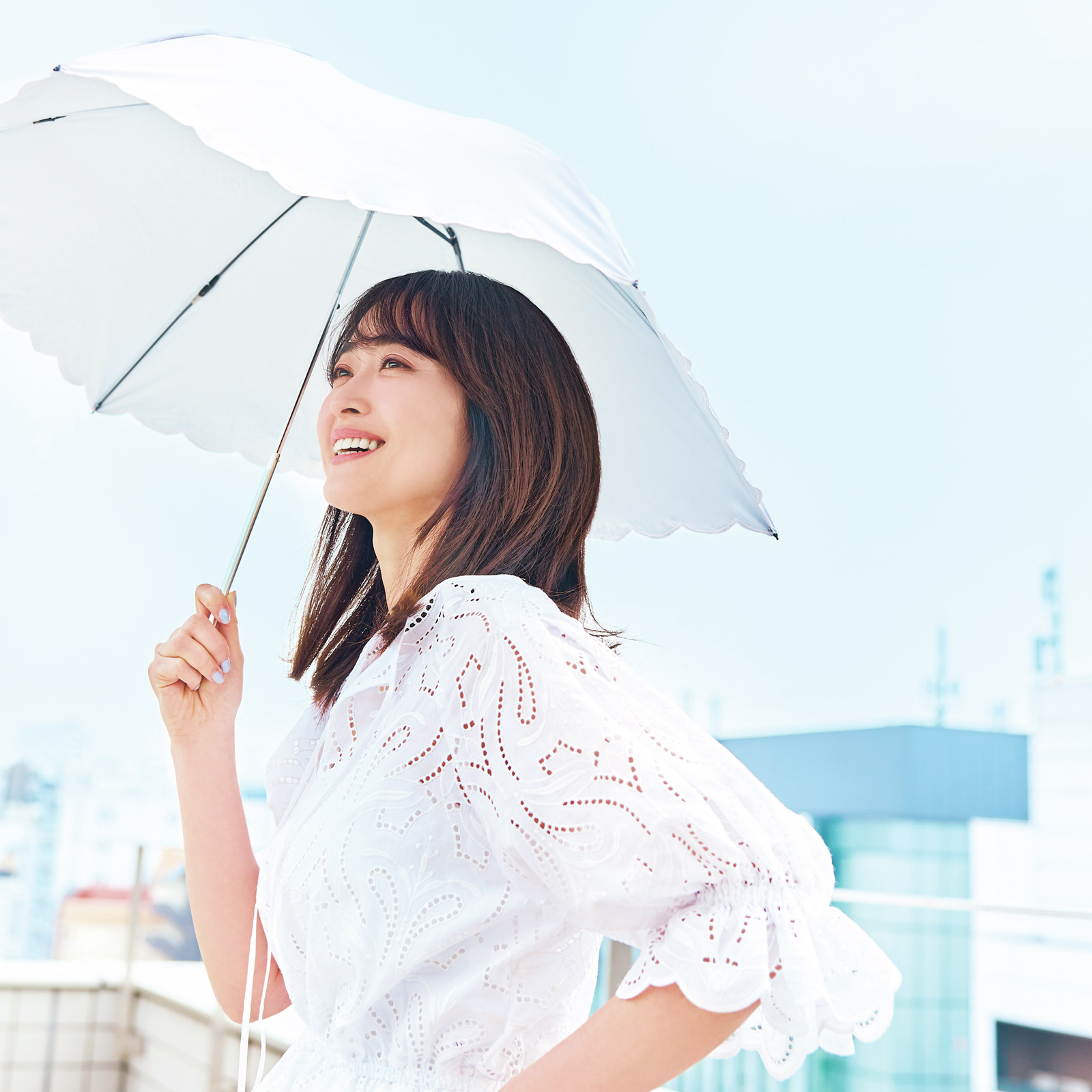 【フワクール×美ST】スカラップ晴雨兼用軽量日傘¥12,100(MOONBAT/買える!美ST)ブラウス¥33,000(ラヴェイユ/フランドルカスタマーサービス)カップ付きキャミソール¥4,990(アンフィーロ)バングル¥36,300(エムシー・スタジオ/ZUTTOHOLIC)